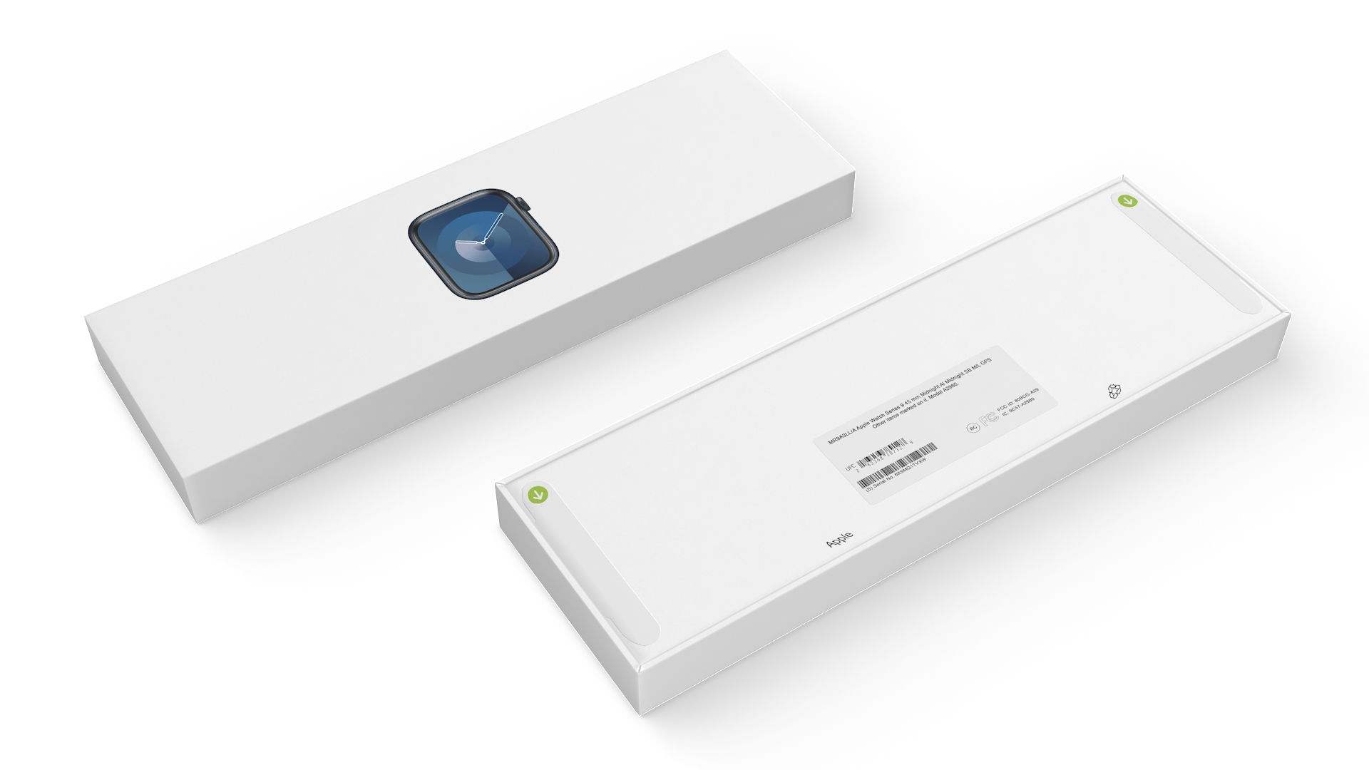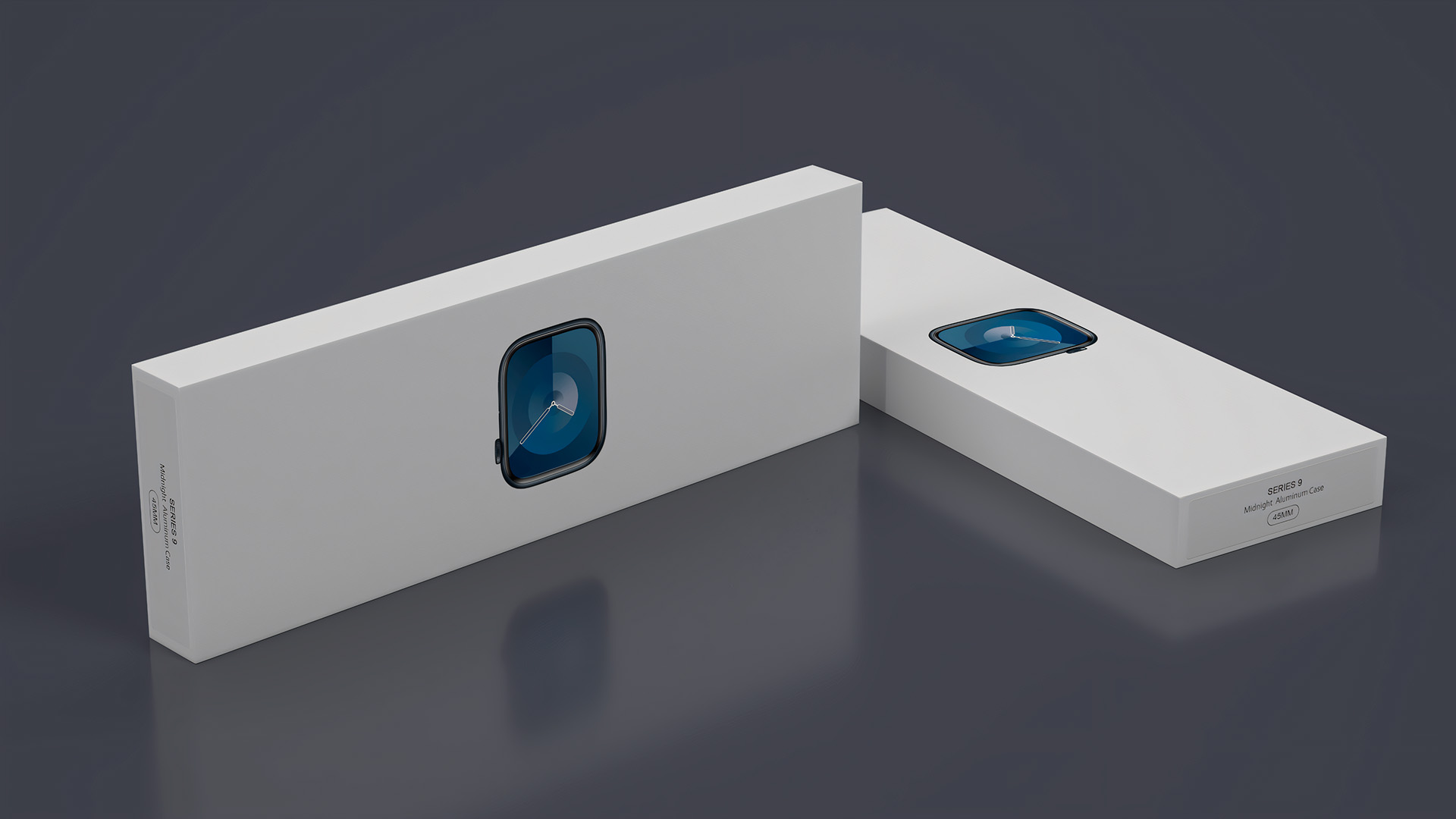 Apple Watch Series 9 Packaging is a three-dimensional model of cardboard rectangular box, which can be referred to as a carton box, which serves as packaging for computer equipment and electronic gadgets.