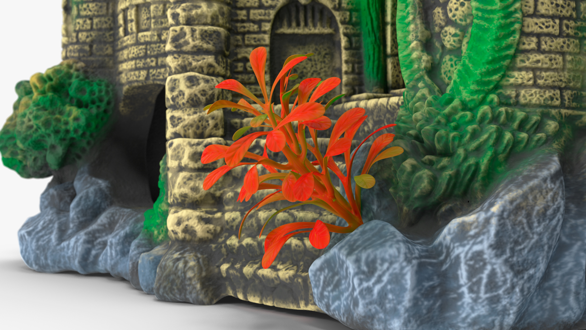 Aquarium Object Castle Ruin Hideout is a high quality, photo real 3d model that will enhance detail and realism to any of your rendering projects. The model has a fully textured, detailed design that allows for close-up renders, and was originally modeled in 3ds Max 2020 and rendered with V-Ray. Renders have no postprocessing!