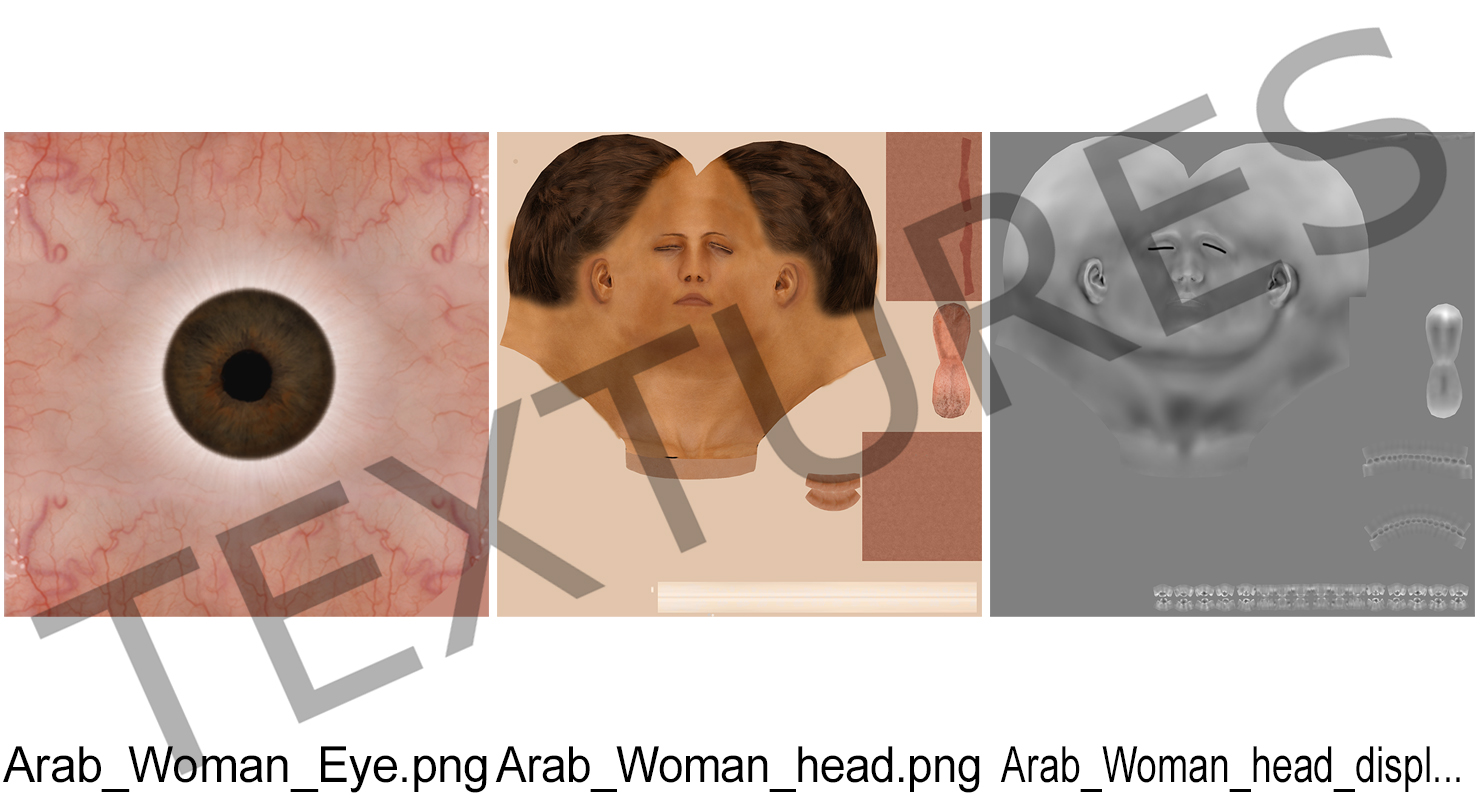 Arab Woman Head is a high quality, photo real 3d model that will enhance detail and realism to any of your rendering projects. The model has a fully textured, detailed design that allows for close-up renders, and was originally modeled in 3ds Max 2020 and rendered with V-Ray. Renders have no postprocessing!