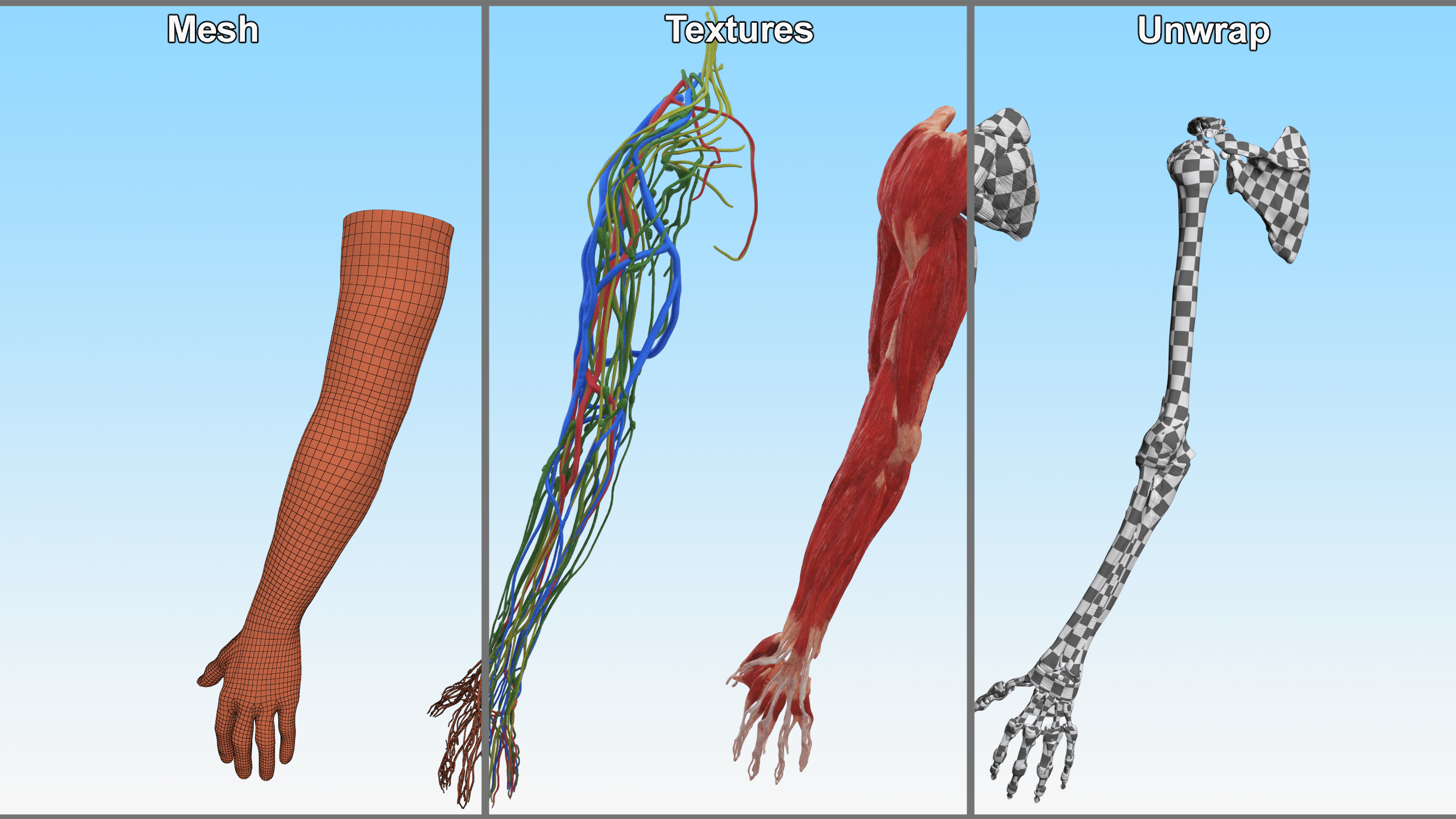 Arm Realistic Male Anatomy is a high quality, photo real 3d model that will enhance detail and realism to any of your rendering projects. The model has a fully textured, detailed design that allows for close-up renders, and was originally modeled in 3ds Max 2020 and rendered with V-Ray. Renders have no postprocessing!