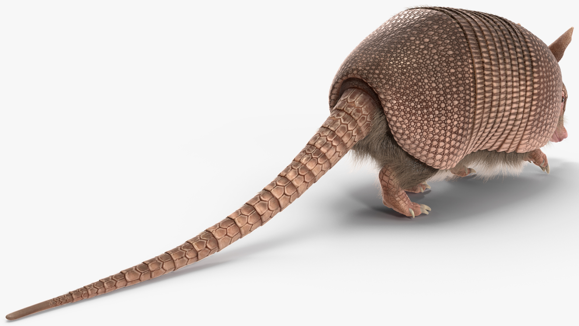 Armadillo in Walking Pose Pink Fur is a three-dimensional model of armadillo which is a small to medium-sized mammal known for its distinctive armor-like shell (leathery armor shell) and long, sharp claws for digging, and that is a New World placental mammal in the order Cingulata.