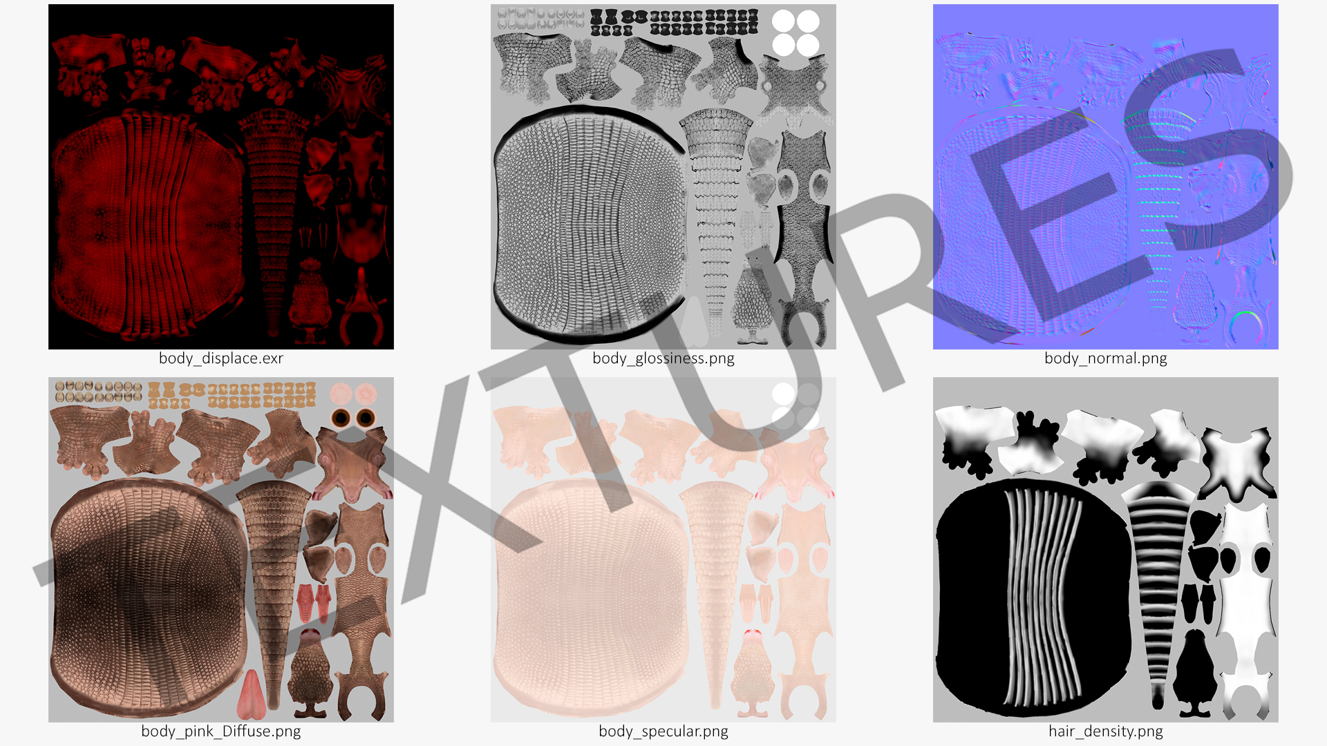 All textures and materials are included and mapped. (All colors can be easily modified.)