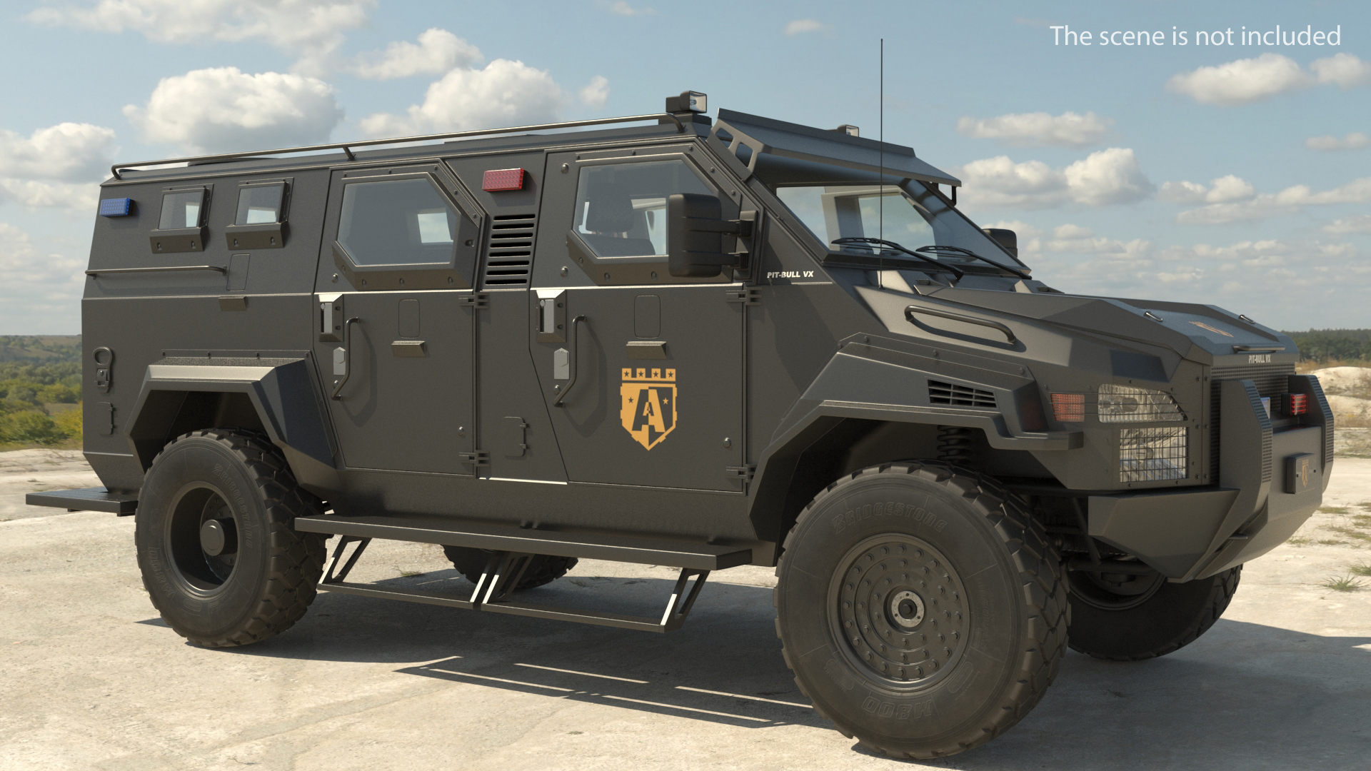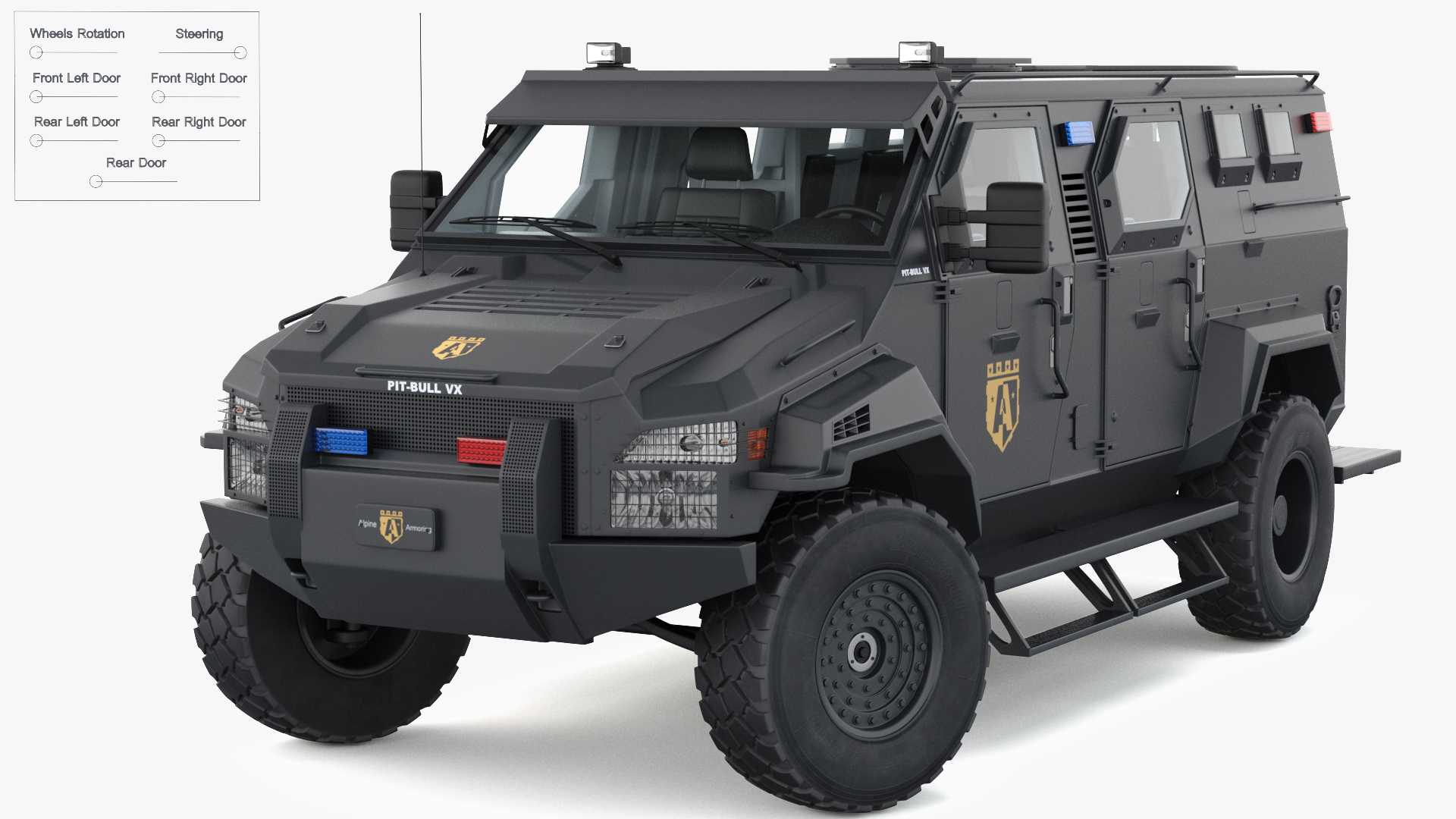 Armored SWAT Truck Pit-Bull VX Rigged is a high quality, photo real 3d model that will enhance detail and realism to any of your rendering projects. The model has a fully textured, detailed design that allows for close-up renders, and was originally modeled in 3ds Max 2020 and rendered with V-Ray. Renders have no postprocessing!