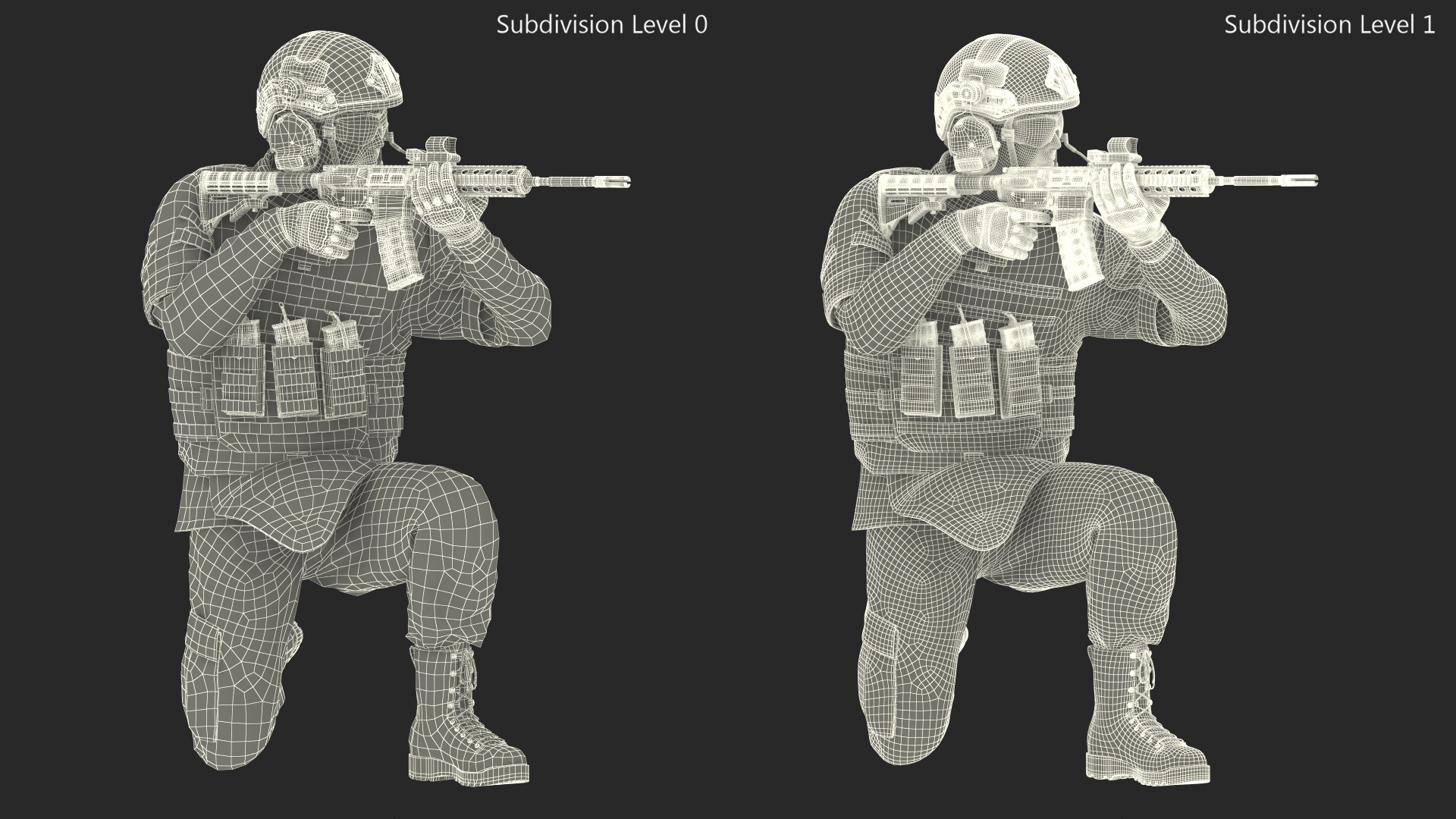 Army Soldier in Green Camo with Rifle Aiming is a high quality, photo real 3d model that will enhance detail and realism to any of your rendering projects. The model has a fully textured, detailed design that allows for close-up renders, and was originally modeled in 3ds Max 2020 and rendered with V-Ray. Renders have no postprocessing!