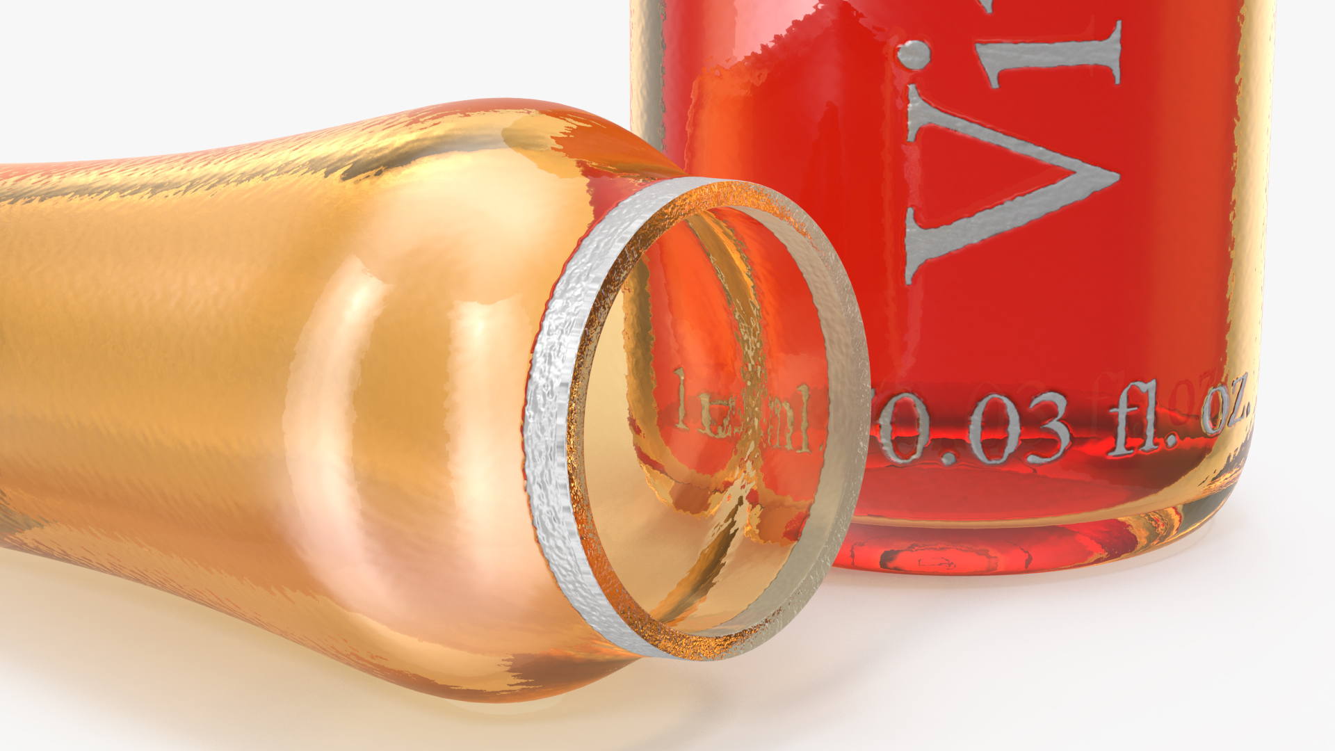 Ascorbic Acid 1ml Amber Ampoule Open (ampoule, ampule, ampul, or ampulla) a small sealed glass vial which is used to store, contain and preserve a medical liquid drug.