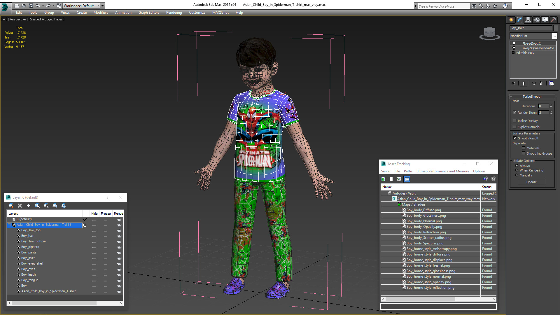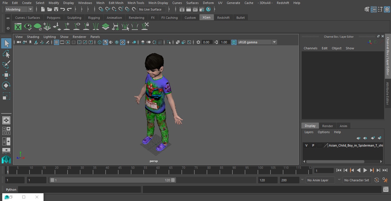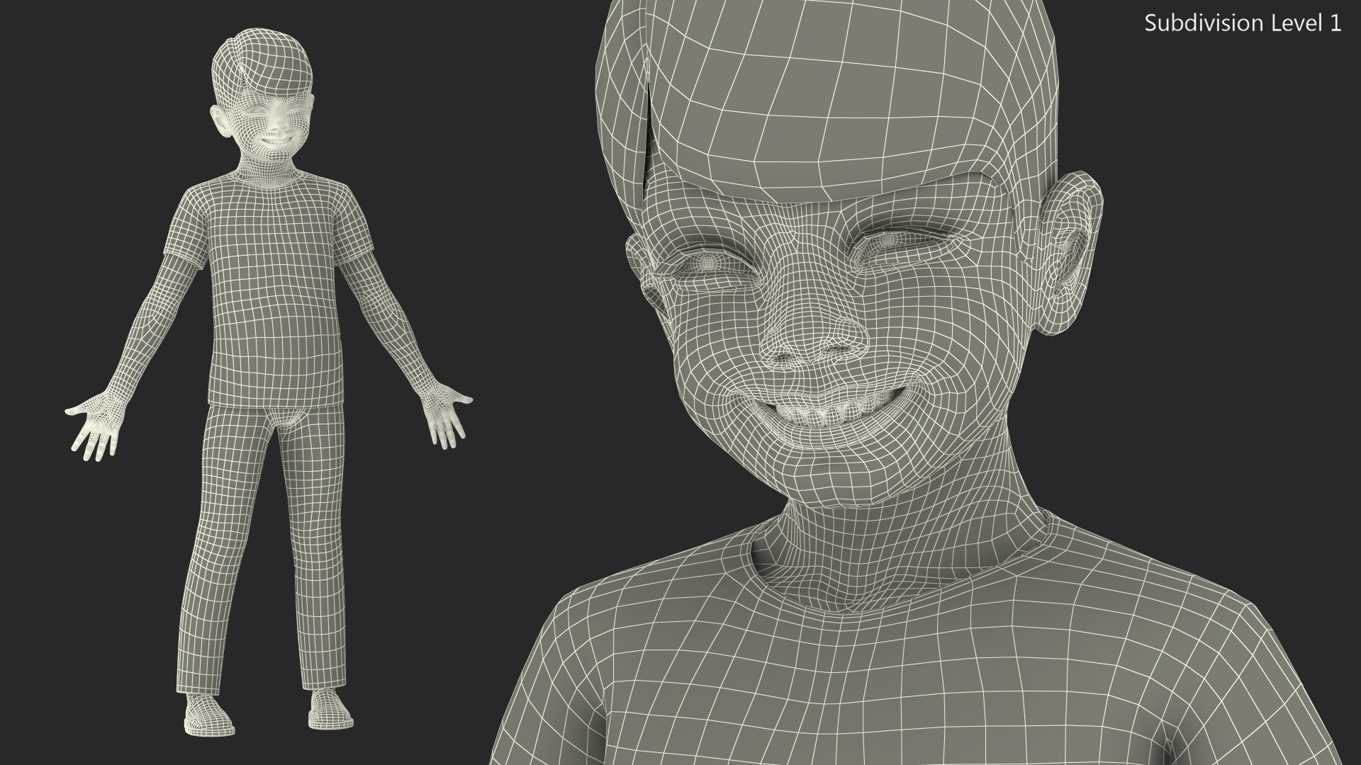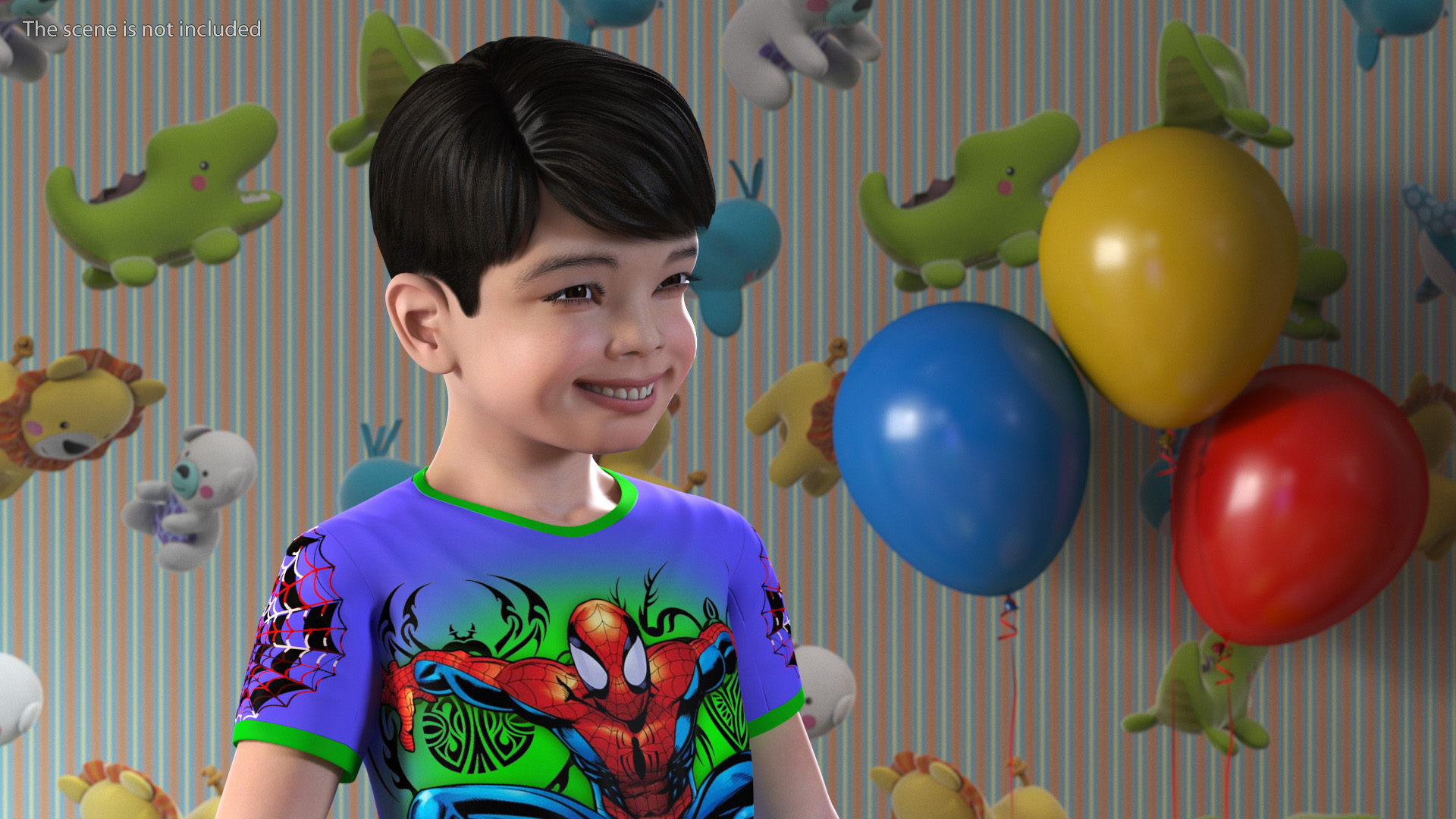 Asian Child Boy in Spiderman T-shirt is a high quality, photo real 3d model that will enhance detail and realism to any of your rendering projects. The model has a fully textured, detailed design that allows for close-up renders, and was originally modeled in 3ds Max 2020 and rendered with V-Ray. Renders have no postprocessing!