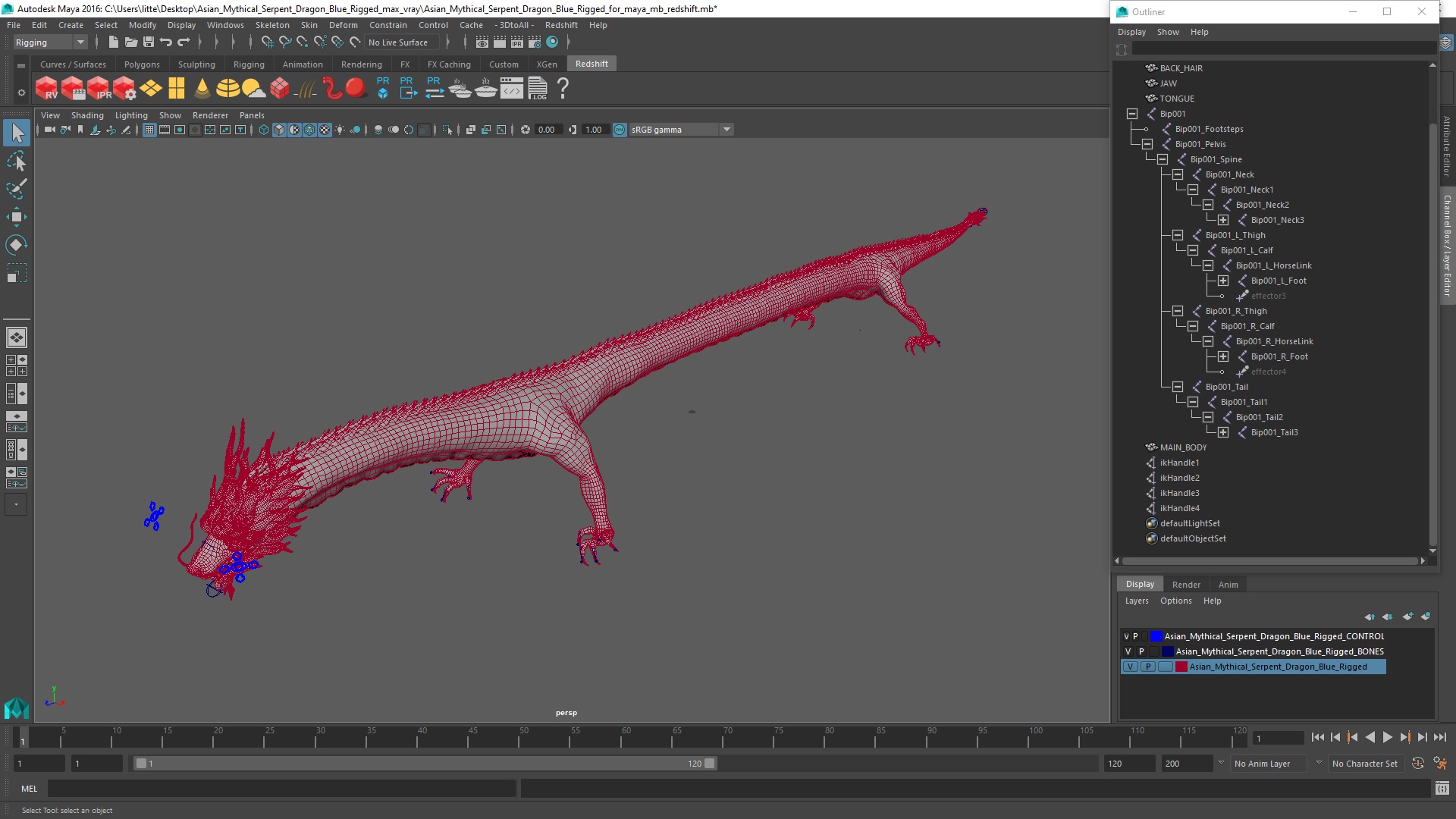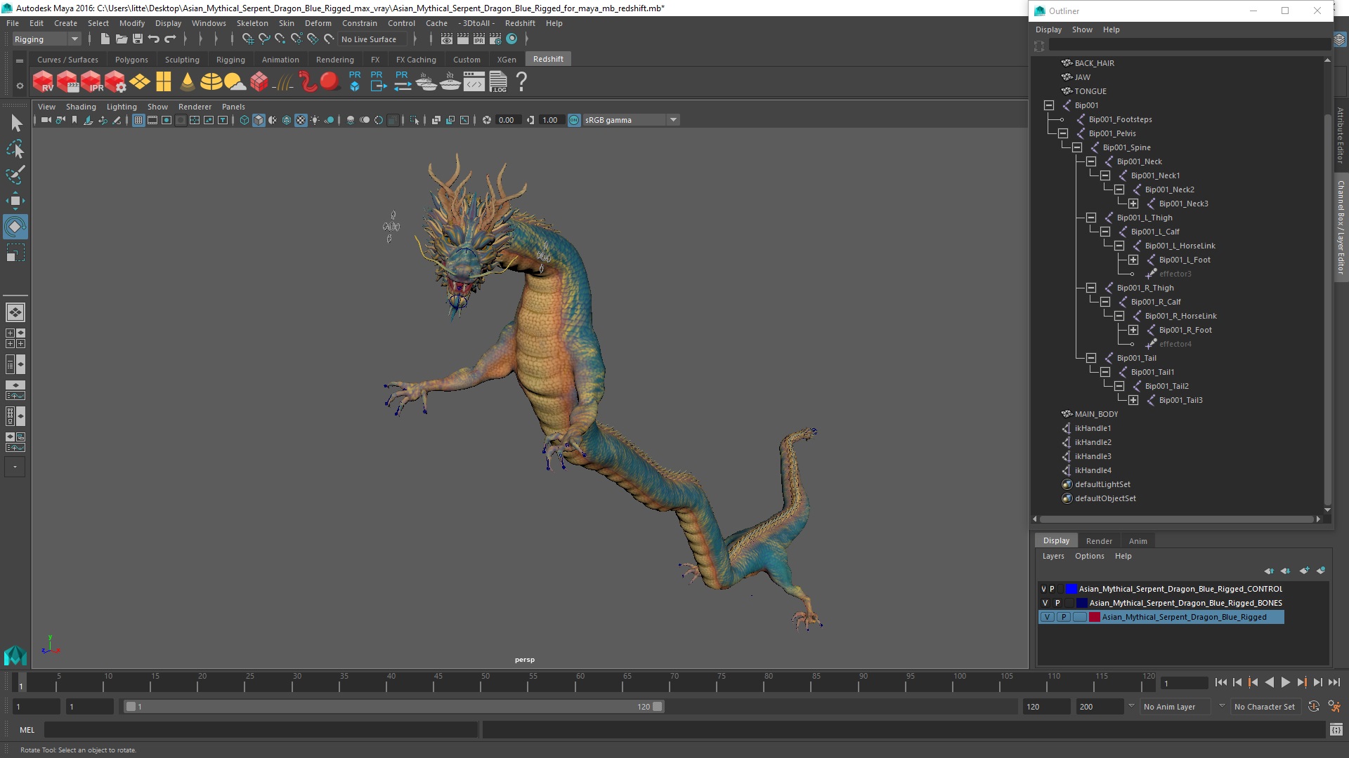 Asian Mythical Serpent Dragon Blue Rigged for Maya is fully rigged and is ready to be animated in Maya. You can easily position it the way you need or animate it the way your project requires. See the screenshots to get an idea of how rigging works. The pose of the model on the render images is an example and can be recreated using rig, it is not initially included into the product.