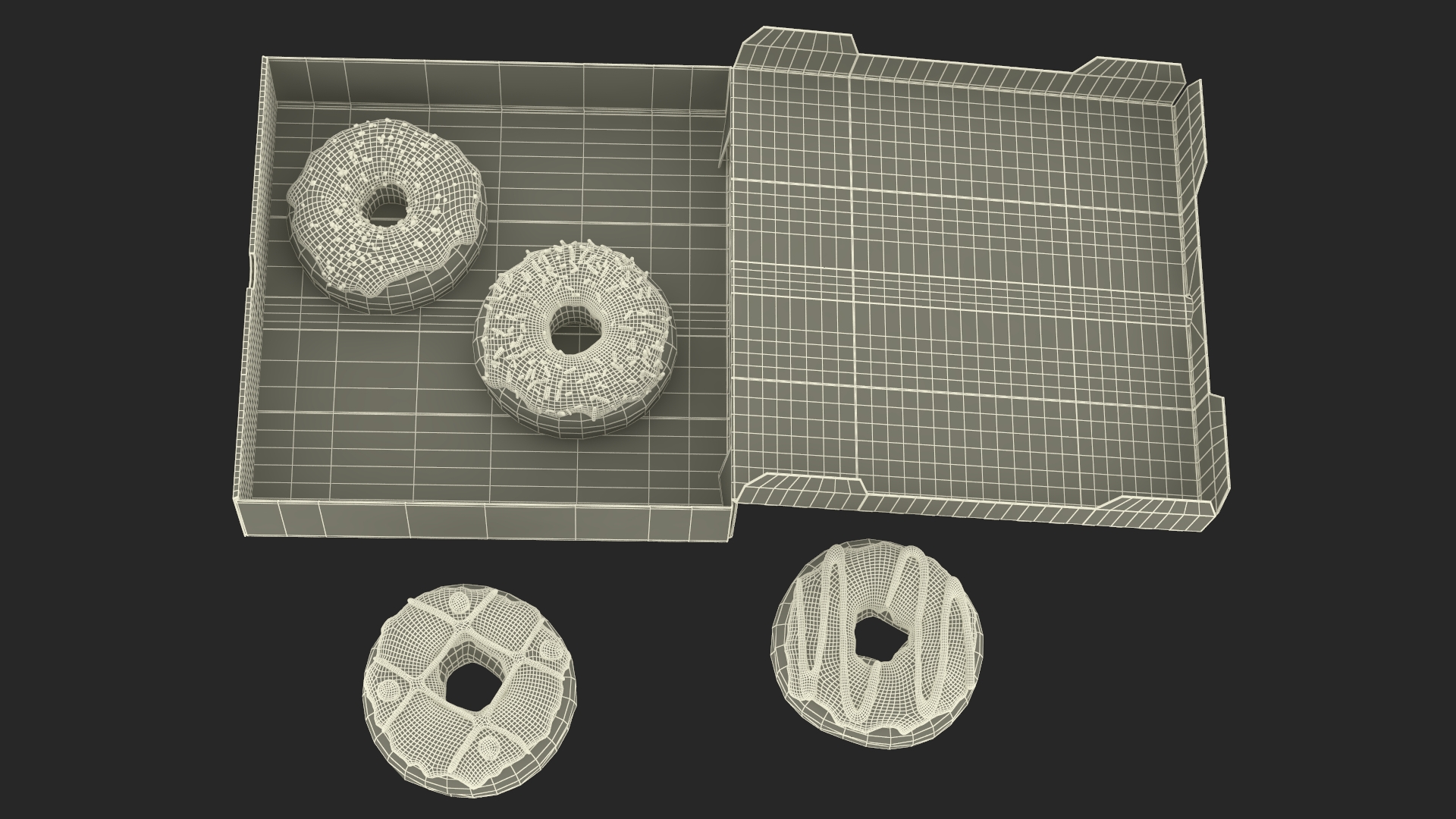 Assorted Donuts in Cardboard Box Mockup is a high quality, photo real 3d model that will enhance detail and realism to any of your rendering projects. The model has a fully textured, detailed design that allows for close-up renders, and was originally modeled in 3ds Max 2020 and rendered with V-Ray. Renders have no postprocessing!