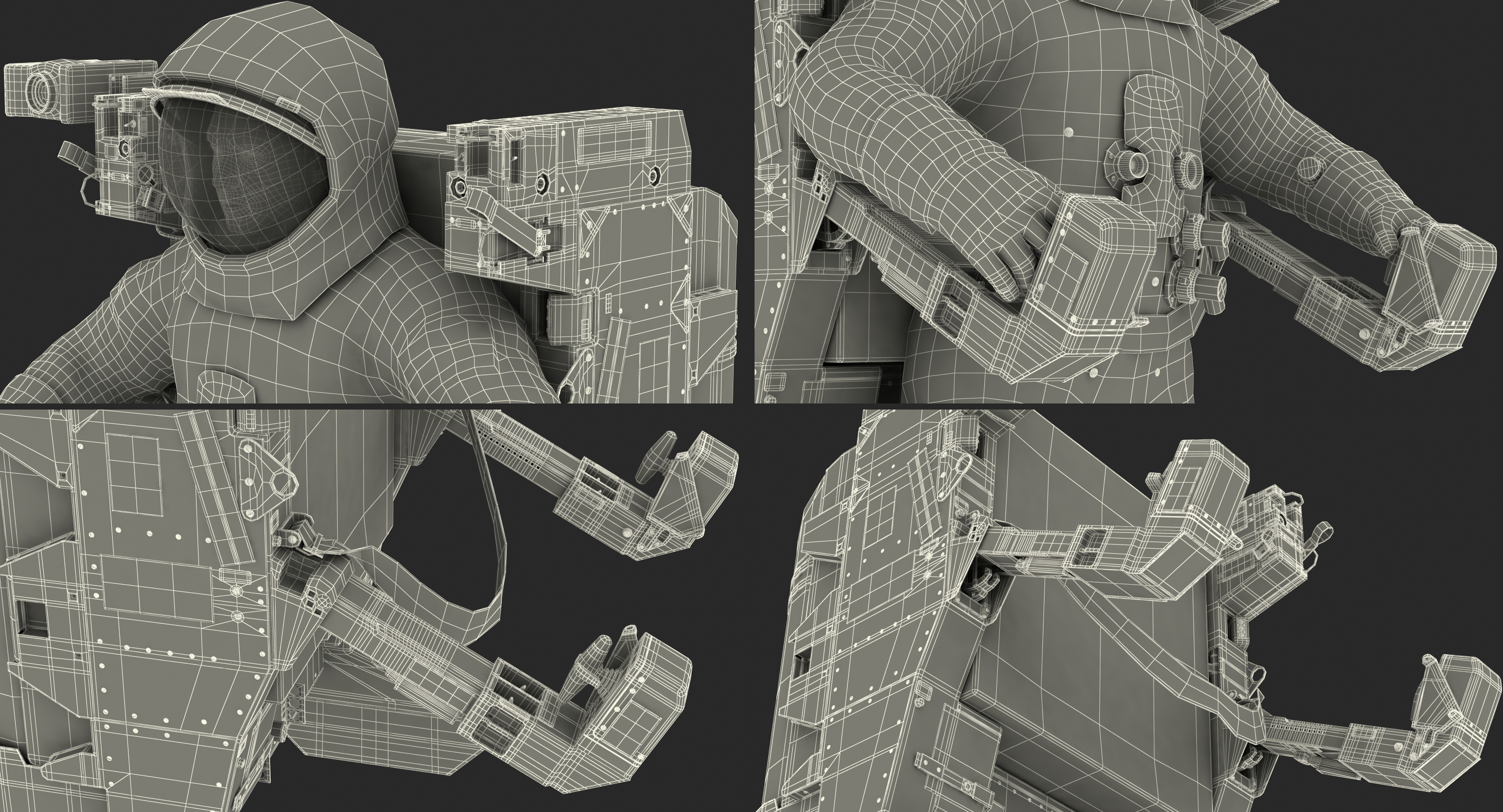 Astronaut in Spacesuit A7L with Manned Maneuvering Unit Rigged is a high quality, photo real 3d model that will enhance detail and realism to any of your rendering projects. The model has a fully textured, detailed design that allows for close-up renders, and was originally modeled in 3ds Max 2020 and rendered with V-Ray. Renders have no postprocessing!