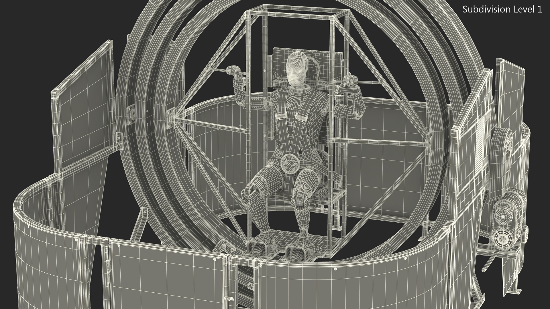 Astronaut Training Simulator with Mannequin Rigged is a 3d model of device or system that replicates the conditions and experiences of space travel and allows astronauts to practice and prepare for their missions.