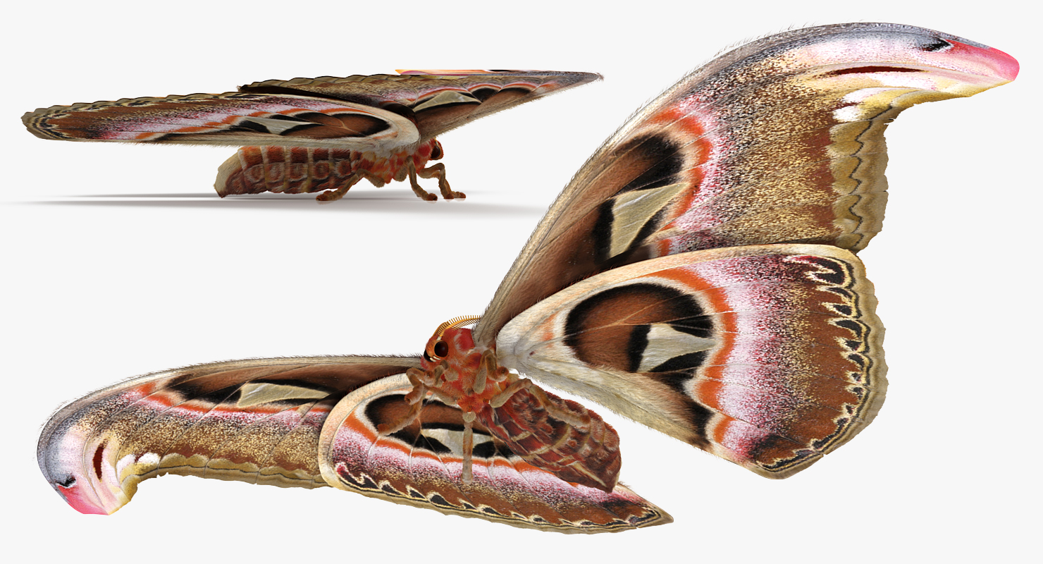 Attacus Atlas Moth Sitting Pose with Fur is a high quality, photo real 3d model that will enhance detail and realism to any of your rendering projects. The model has a fully textured, detailed design that allows for close-up renders, and was originally modeled in 3ds Max 2020 and rendered with V-Ray. Renders have no postprocessing!