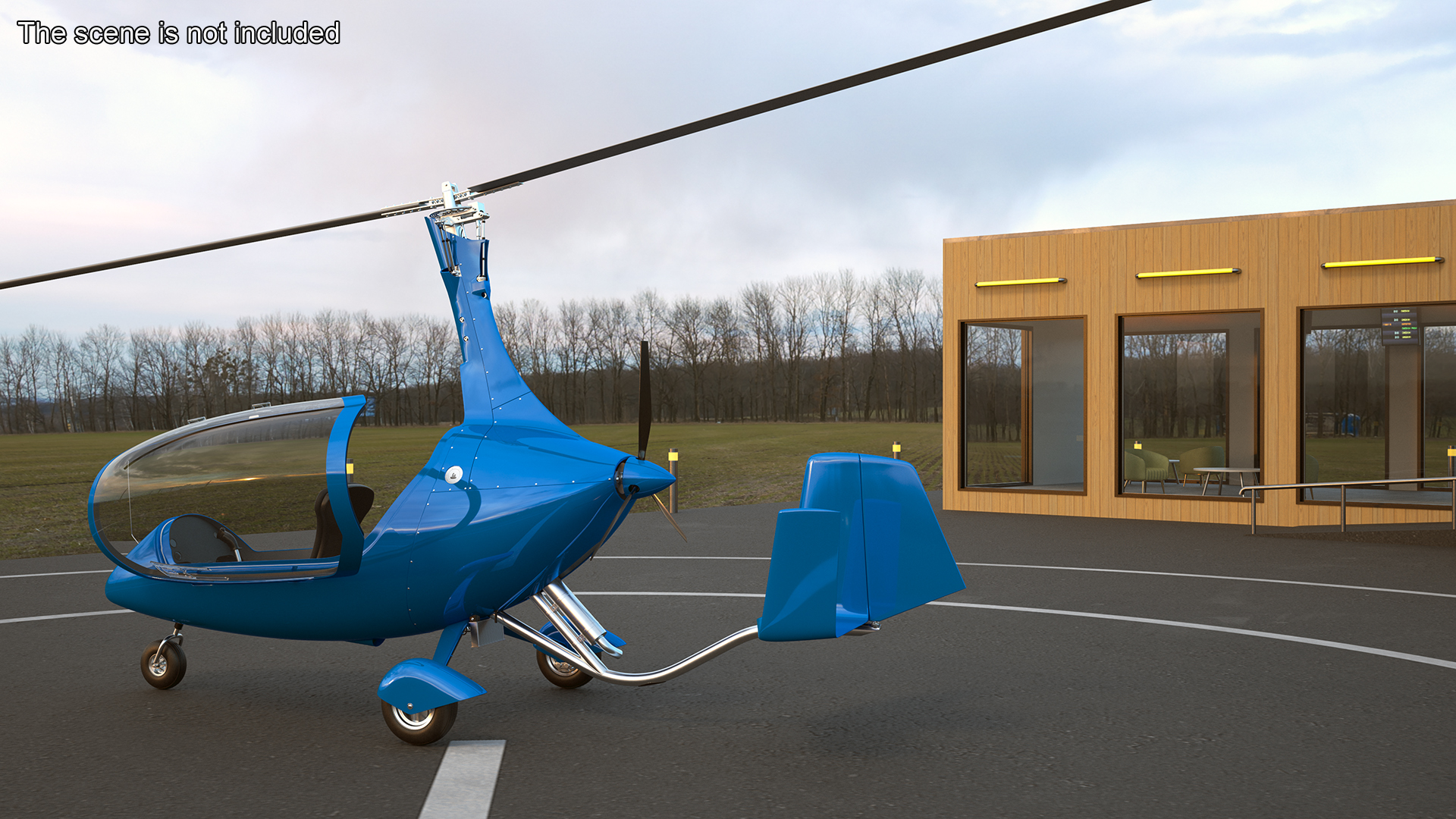 Autogyro Rotorcraft Blue Simple Interior is a 3d model of type of rotorcraft that uses an unpowered rotor in autorotation to generate lift and thrust.