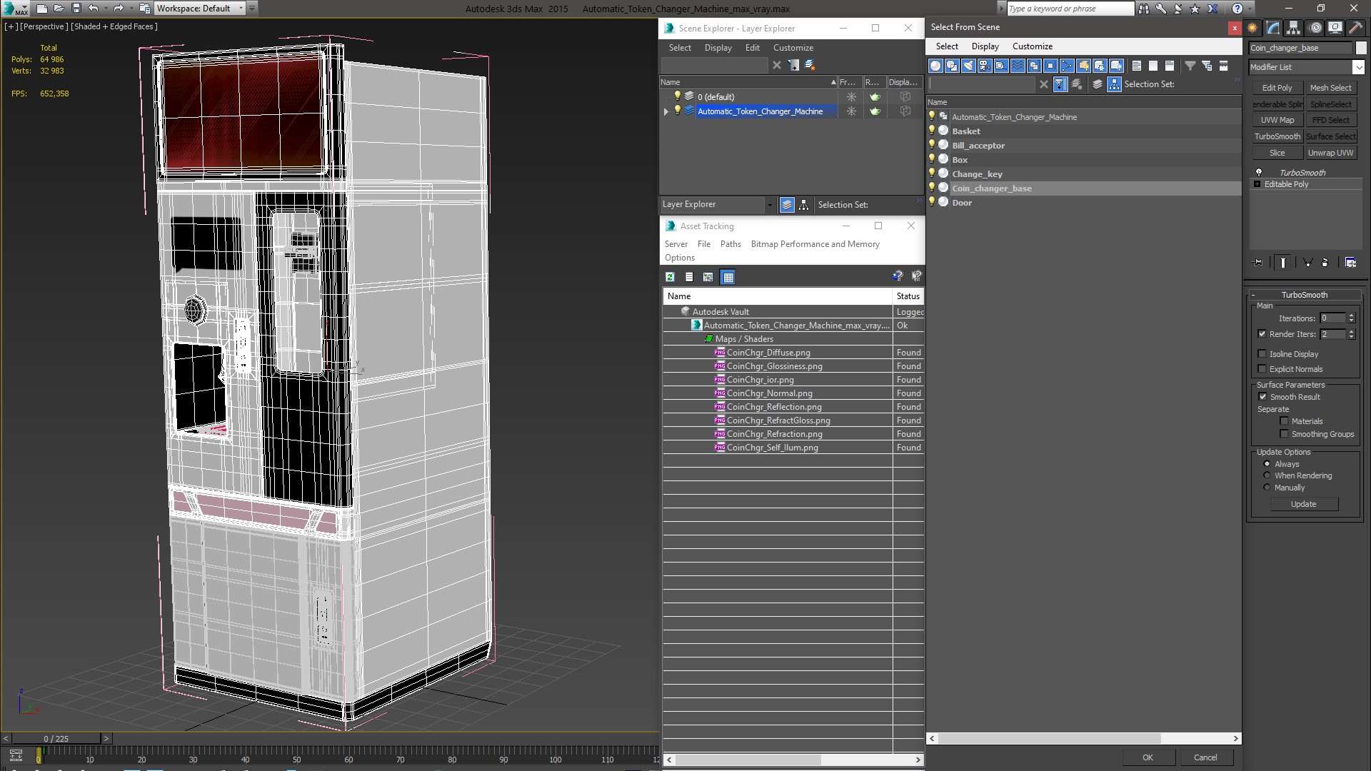 Automatic Token Changer Machine is a high quality, photo real 3d model that will enhance detail and realism to any of your rendering projects. The model has a fully textured, detailed design that allows for close-up renders, and was originally modeled in 3ds Max 2020 and rendered with V-Ray. Renders have no postprocessing!