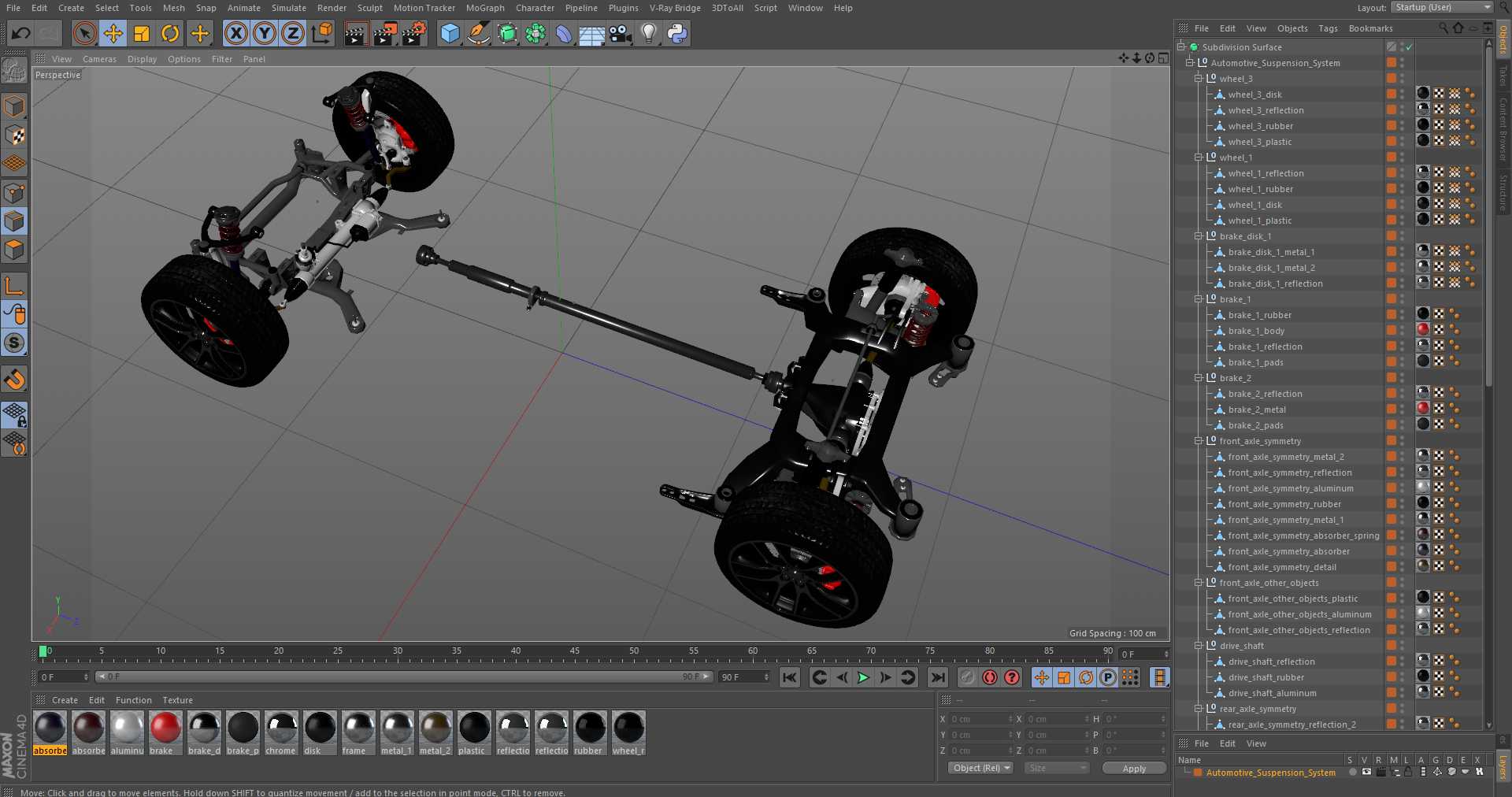 Automotive Suspension System is a high quality, photo real 3d model that will enhance detail and realism to any of your rendering projects. The model has a fully textured, detailed design that allows for close-up renders, and was originally modeled in 3ds Max 2020 and rendered with V-Ray. Renders have no postprocessing!