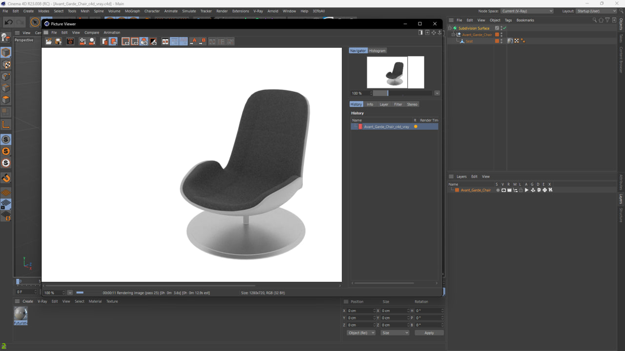Avant Garde Chair is a high quality, photo real 3d model that will enhance detail and realism to any of your rendering projects. The model has a fully textured, detailed design that allows for close-up renders, and was originally modeled in 3ds Max 2020 and rendered with V-Ray. Renders have no postprocessing!