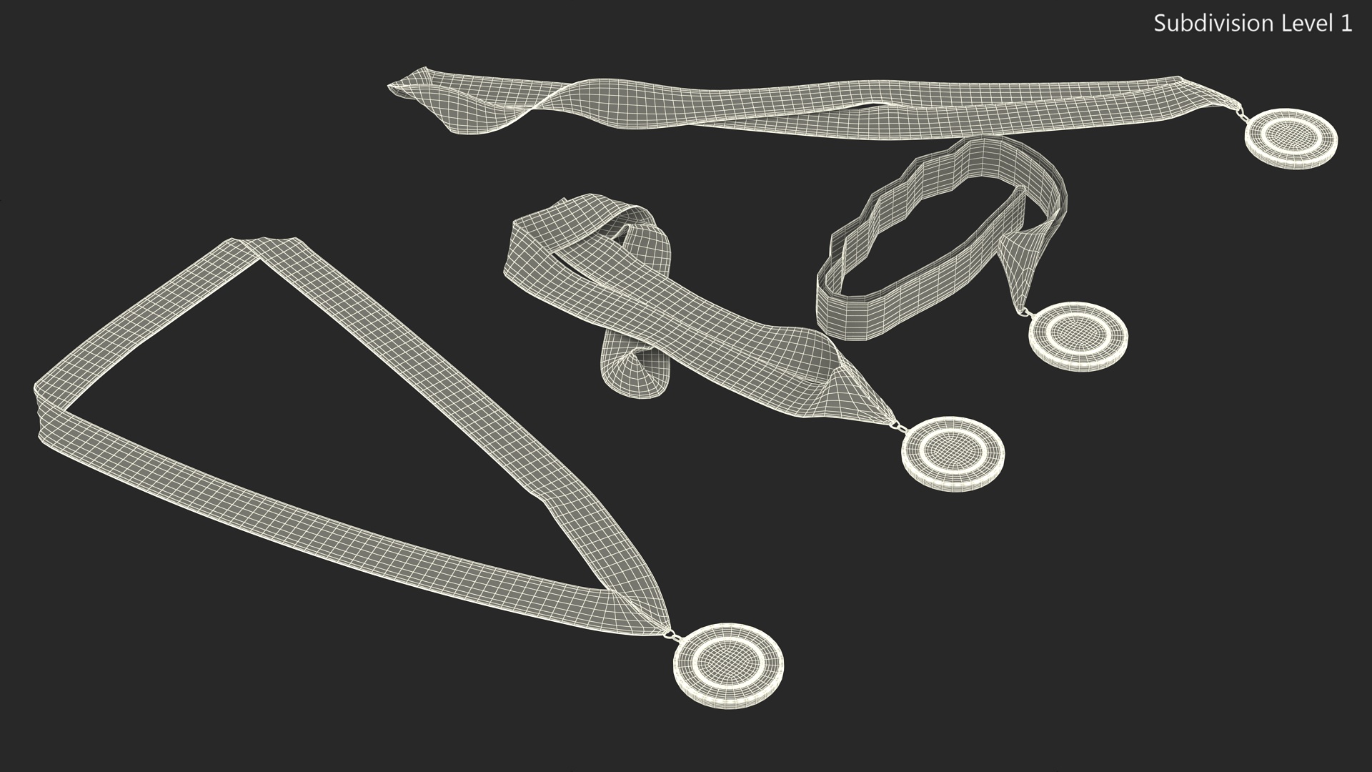 Award Medal Set with Ribbons is a 3d model of medals that are given as a recognition or achievement for winning a competition, contest, or event.
