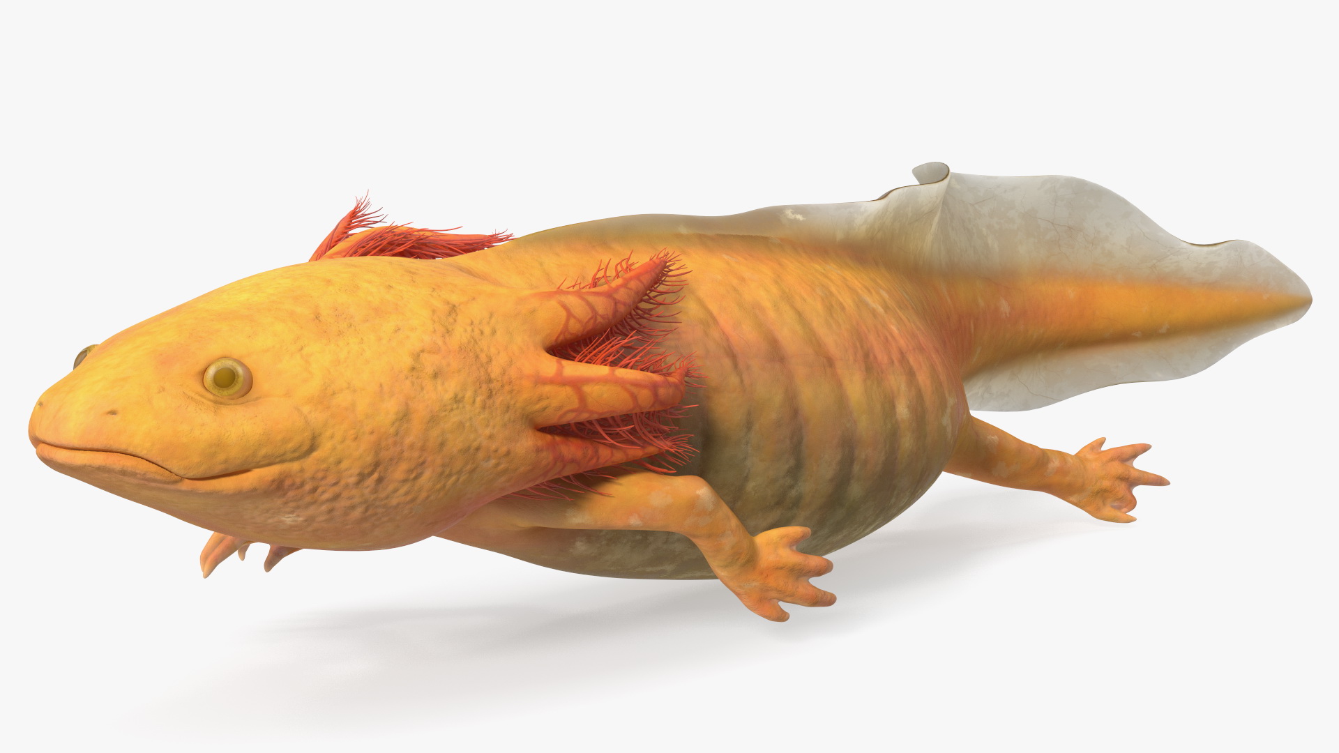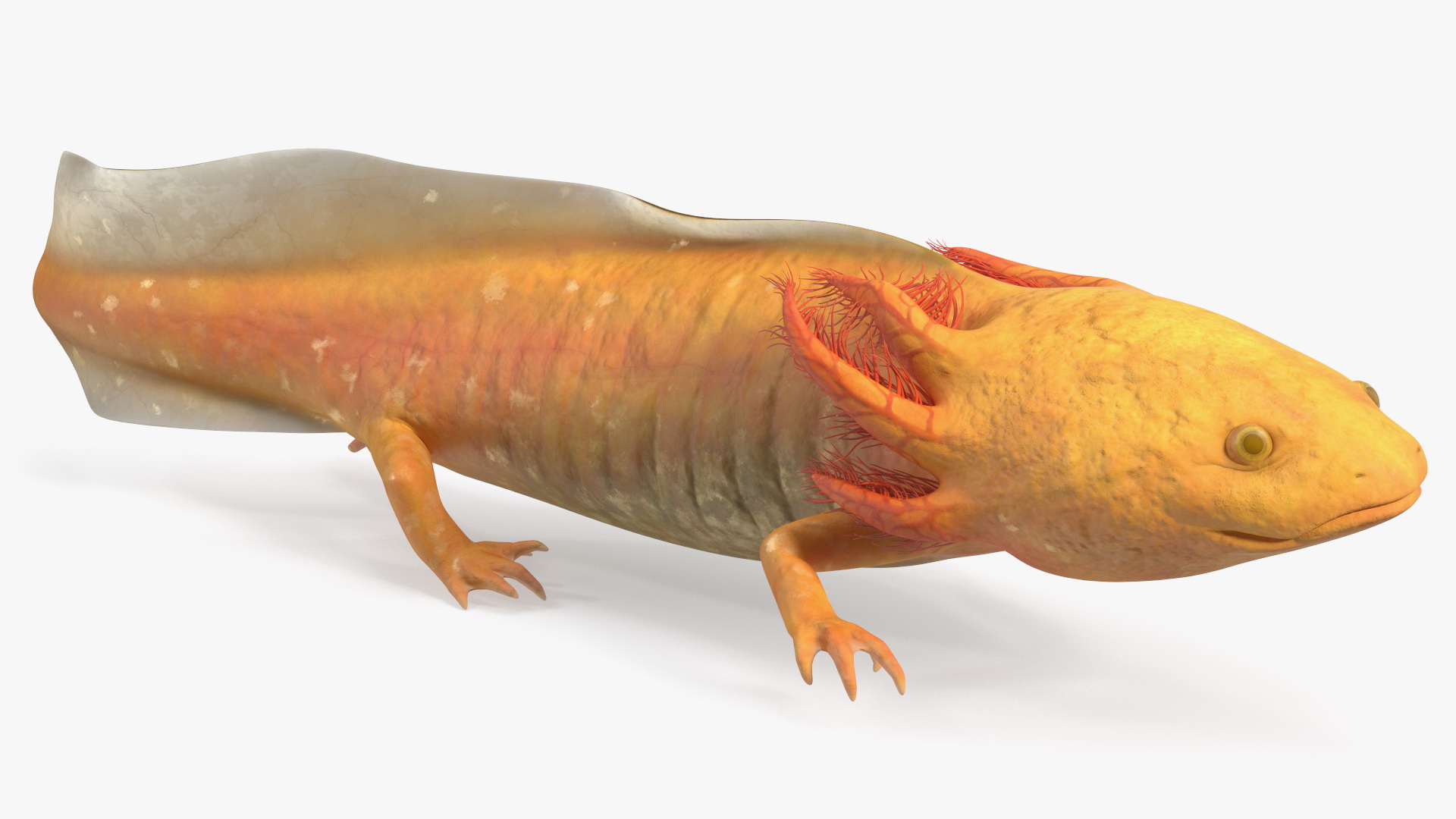 Axolotl Gold-Albino is a three-dimensional model of small unique amphibian belonging to the Ambystoma mexicanum species.