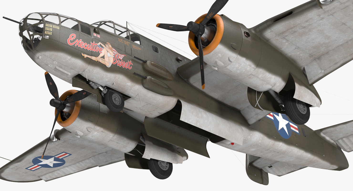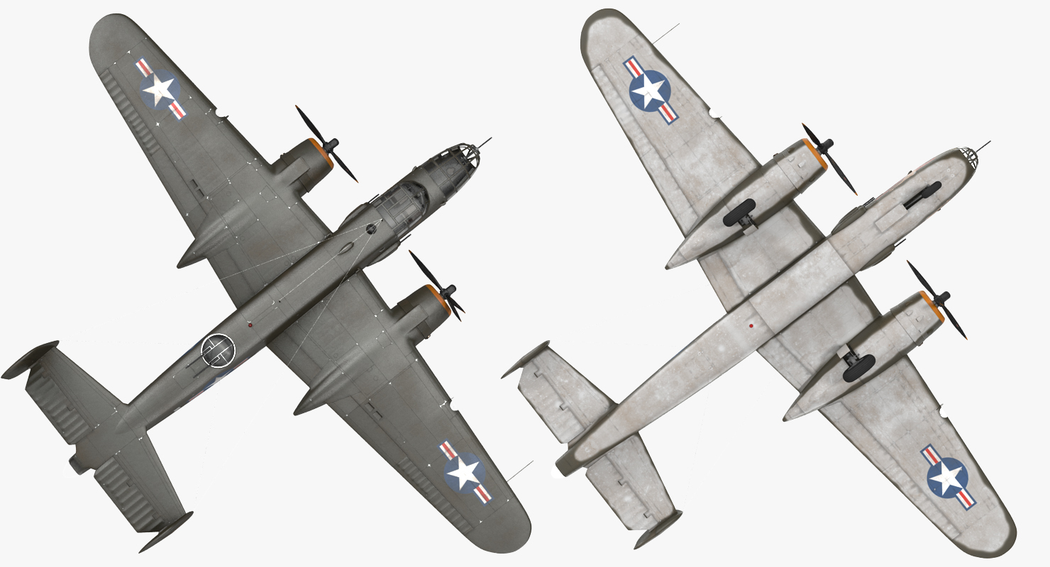 B 25 Mitchell US Medium Bomber Rigged is a high quality, photo real 3d model that will enhance detail and realism to any of your rendering projects. The model has a fully textured, detailed design that allows for close-up renders, and was originally modeled in 3ds Max 2020 and rendered with V-Ray. Renders have no postprocessing!