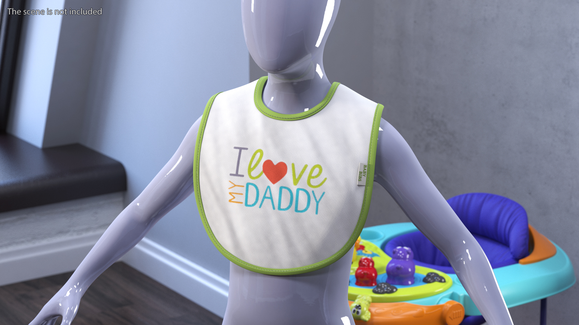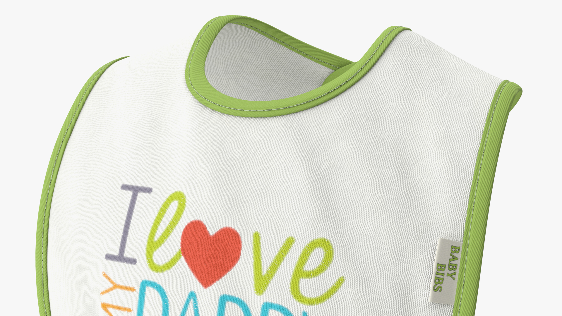 Baby Bib with Print I Love My Daddy Deployed is a high quality, photo real 3d model that will enhance detail and realism to any of your rendering projects. The model has a fully textured, detailed design that allows for close-up renders, and was originally modeled in 3ds Max 2020 and rendered with V-Ray. Renders have no postprocessing!