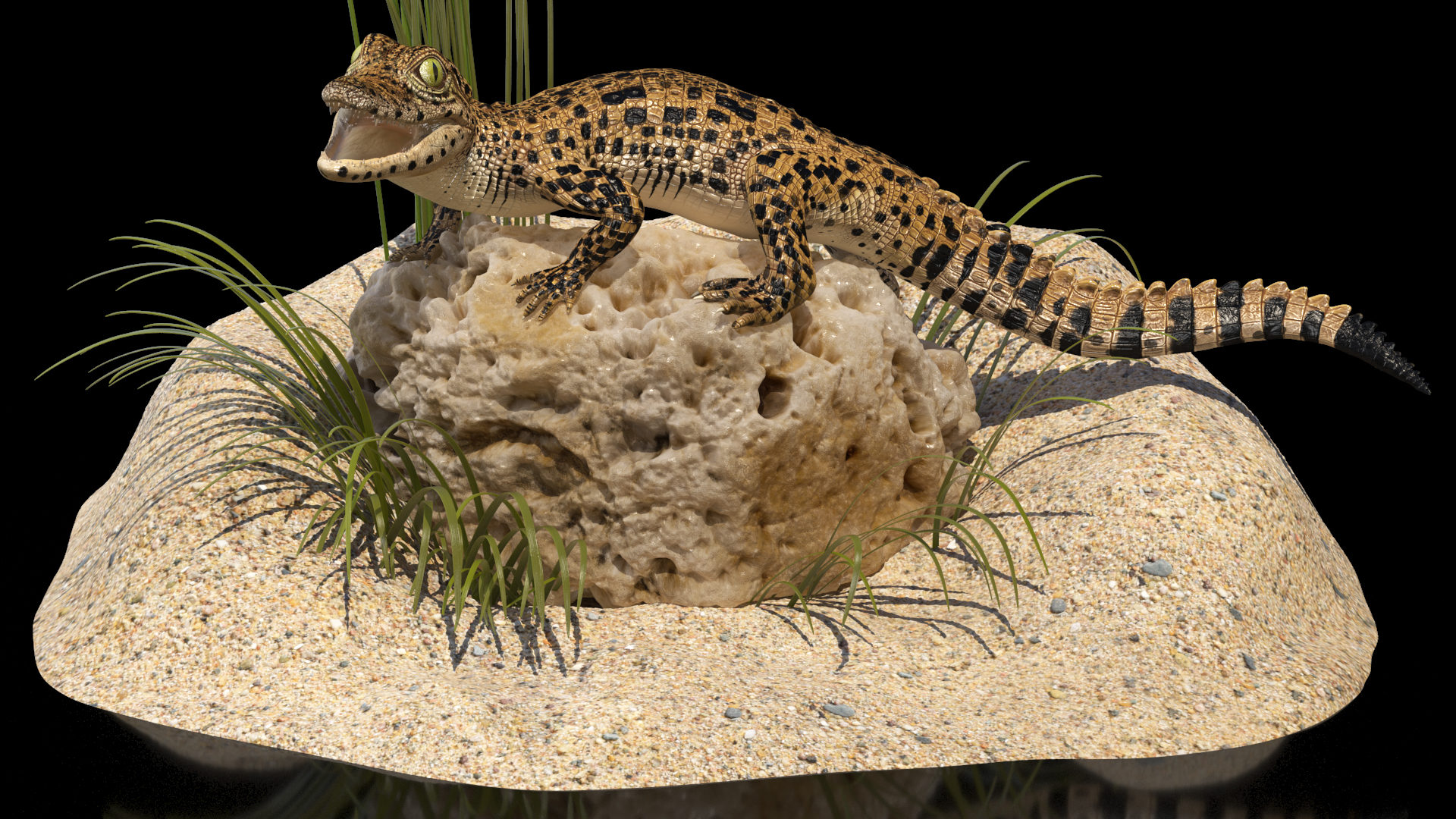 Baby Crocodile Natural Environment is a high quality, photo real 3d model that will enhance detail and realism to any of your rendering projects. The model has a fully textured, detailed design that allows for close-up renders, and was originally modeled in 3ds Max 2020 and rendered with V-Ray. Renders have no postprocessing!