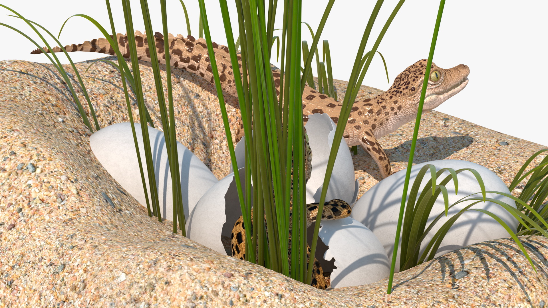 Baby Crocodiles Nest is a high quality, photo real 3d model that will enhance detail and realism to any of your rendering projects. The model has a fully textured, detailed design that allows for close-up renders, and was originally modeled in 3ds Max 2020 and rendered with V-Ray. Renders have no postprocessing!