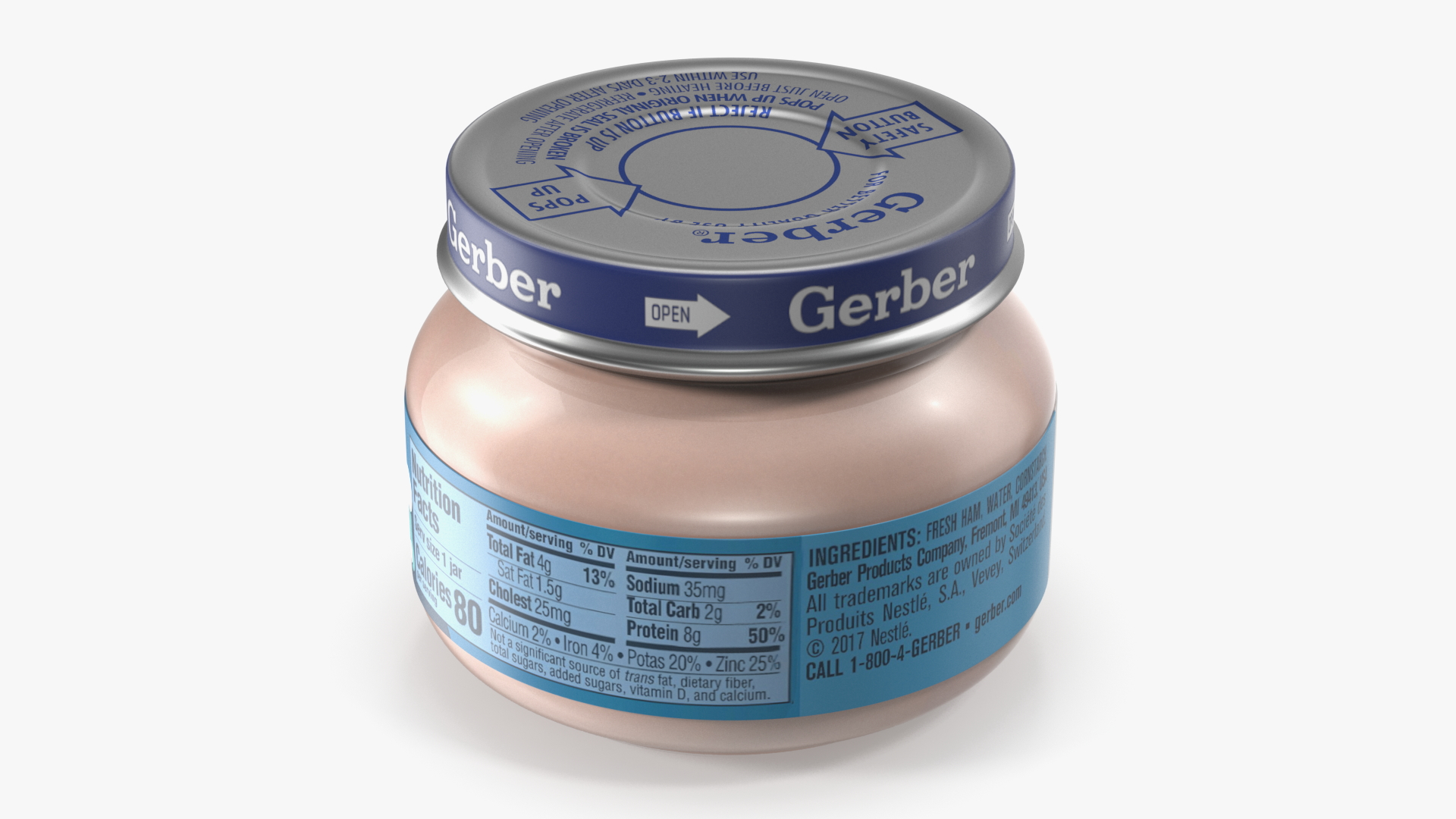 Baby Food Jar Gerber Ham and Gravy 71g is a 3d model of baby food with pureed food for infants and toddlers.