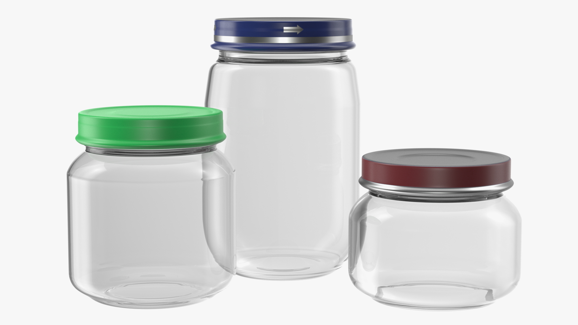 Baby Food Jars Empty Set is a 3d model of small glass containers that are used to store and serve pureed baby food.