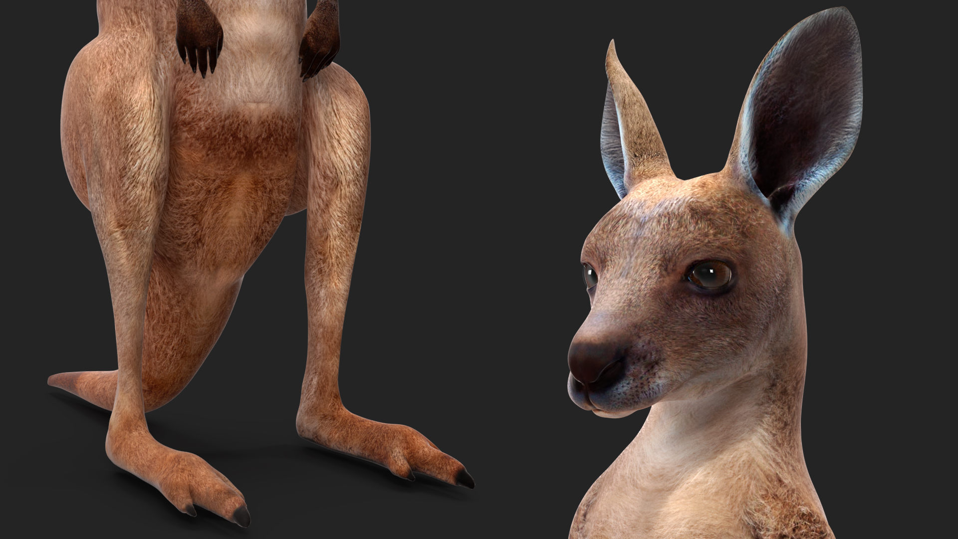 Baby Kangaroo in Standing Pose is a three-dimensional model of female kangaroo creature which is a well known marsupial animal which is native to Australia.