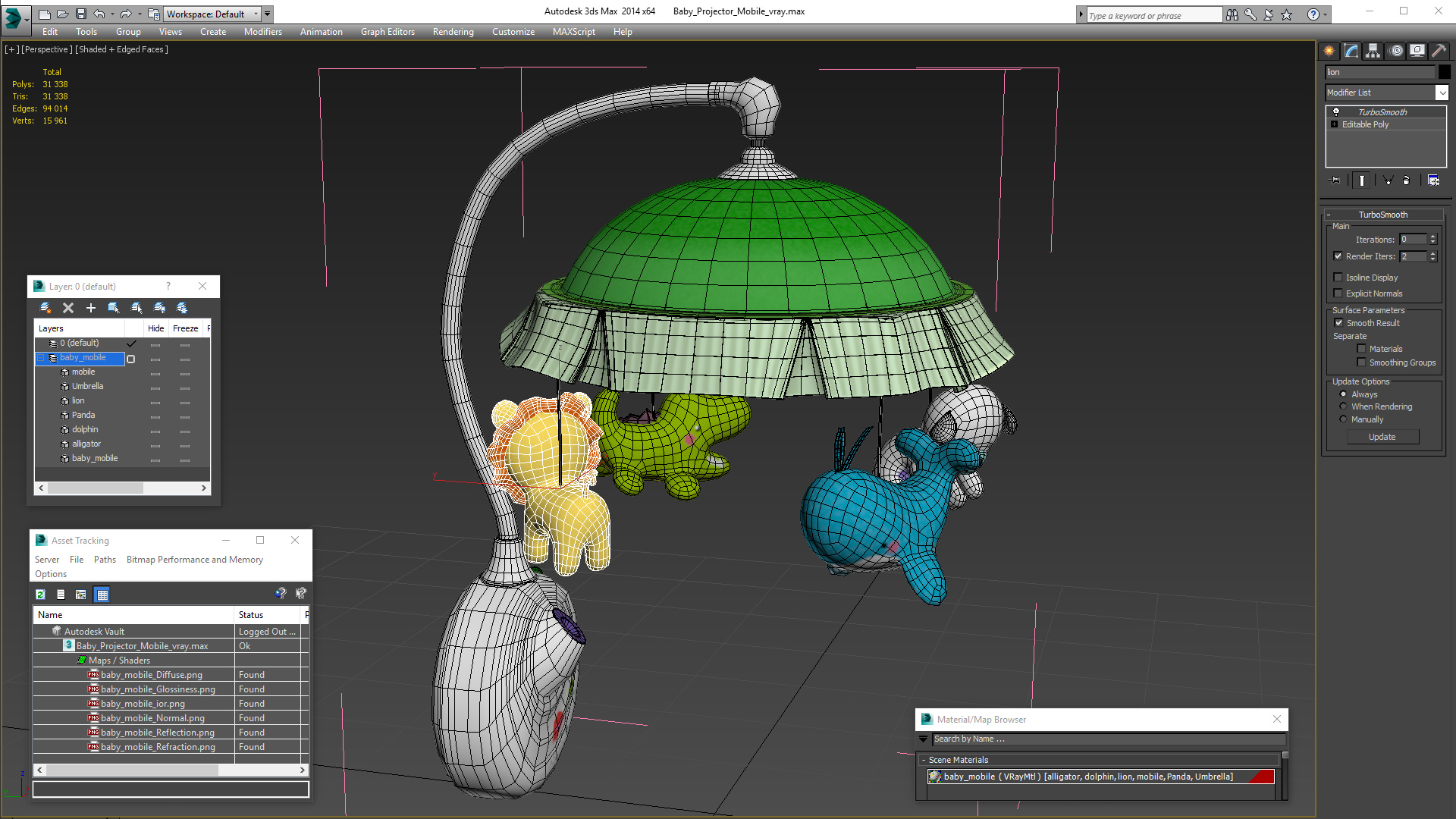 Baby Projector Mobile is a high quality, photo real 3d model that will enhance detail and realism to any of your rendering projects. The model has a fully textured, detailed design that allows for close-up renders, and was originally modeled in 3ds Max 2020 and rendered with V-Ray. Renders have no postprocessing!