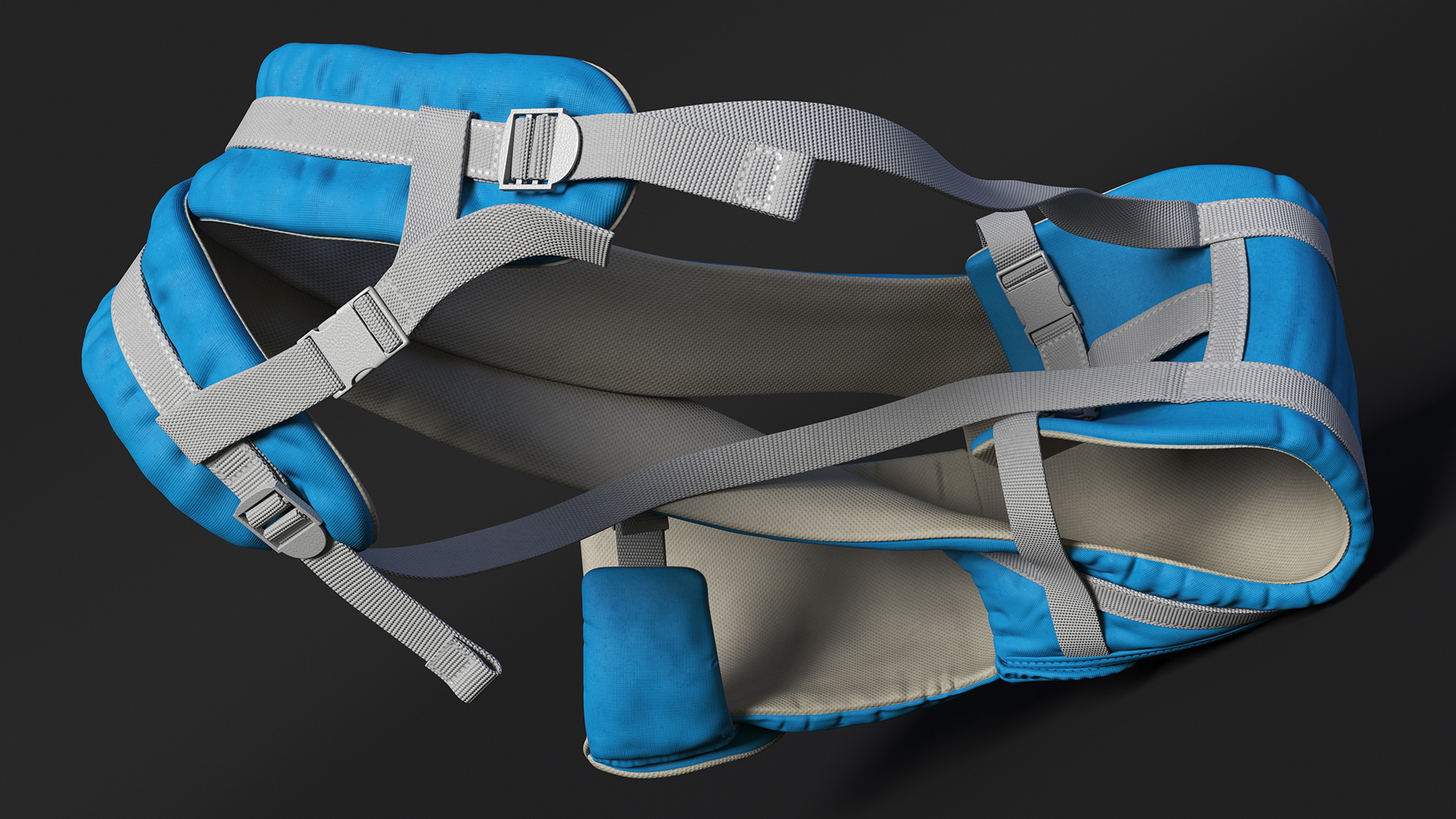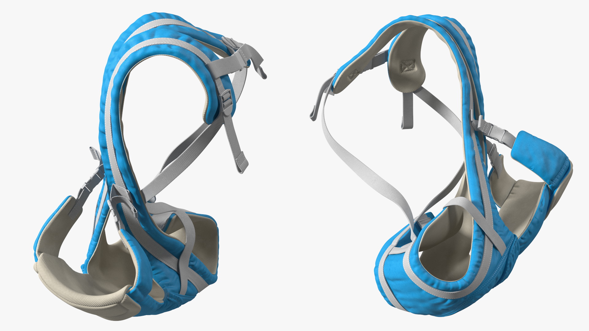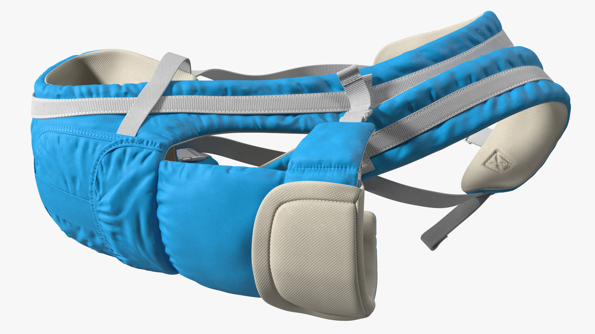 Baby Wrap Carrier Blue Lying Position is a three-dimensional model of modern adjustable infant carrier, often referred to as a babycarrier, kangaroo, baby backpack, baby sling or babywearer, which is a specialized baby-carrying device.