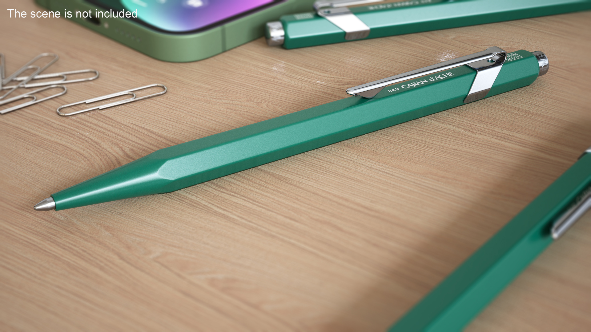 Ball Pen Rolex Caran dAche Silver Green is a 3d model of modern stylish ballpoint pen type writing tool.
