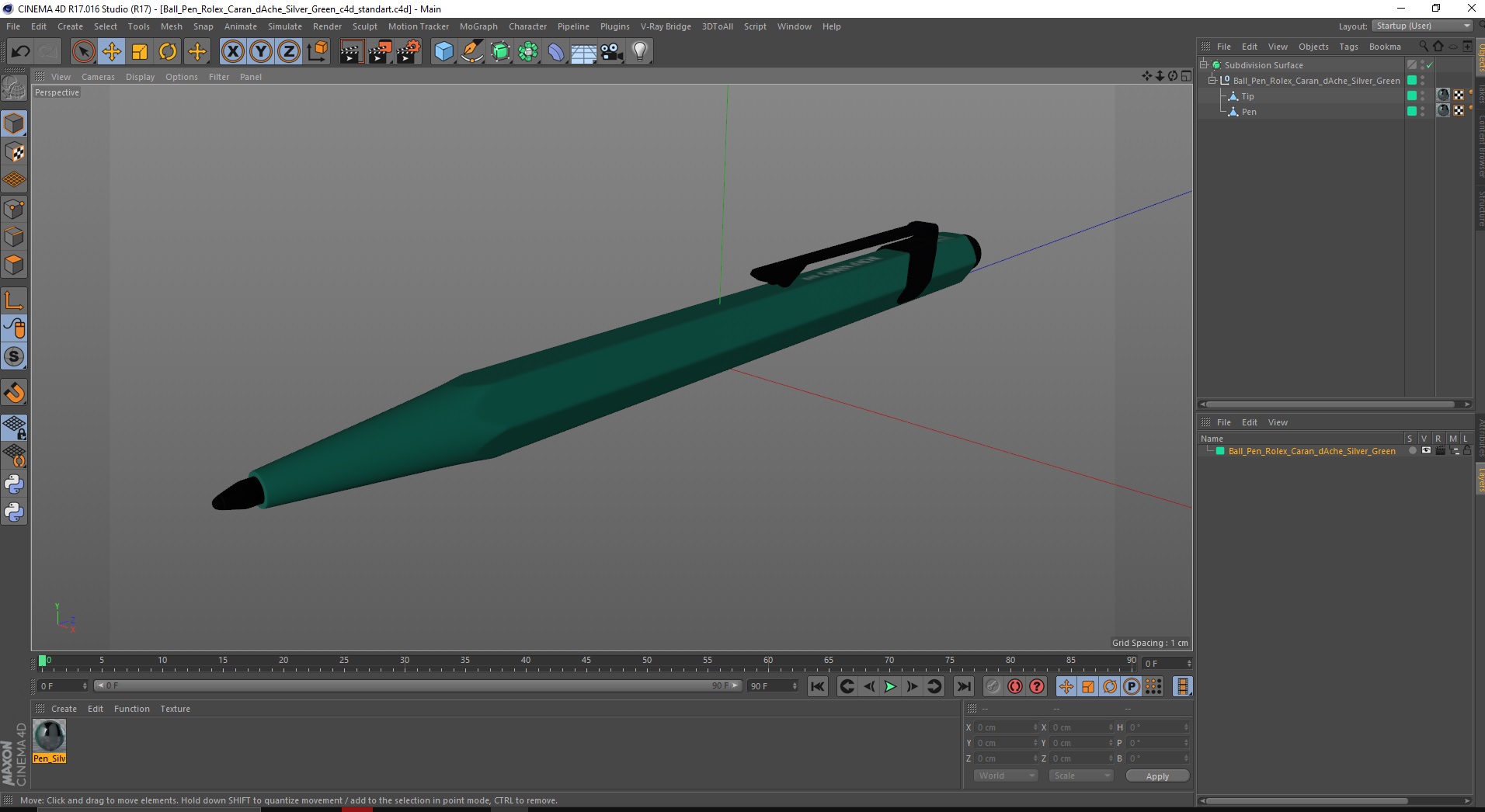 Ball Pen Rolex Caran dAche Silver Green is a high quality, photo real 3d model that will enhance detail and realism to any of your rendering projects. The model has a fully textured, detailed design that allows for close-up renders, and was originally modeled in 3ds Max 2020 and rendered with V-Ray. Renders have no postprocessing!