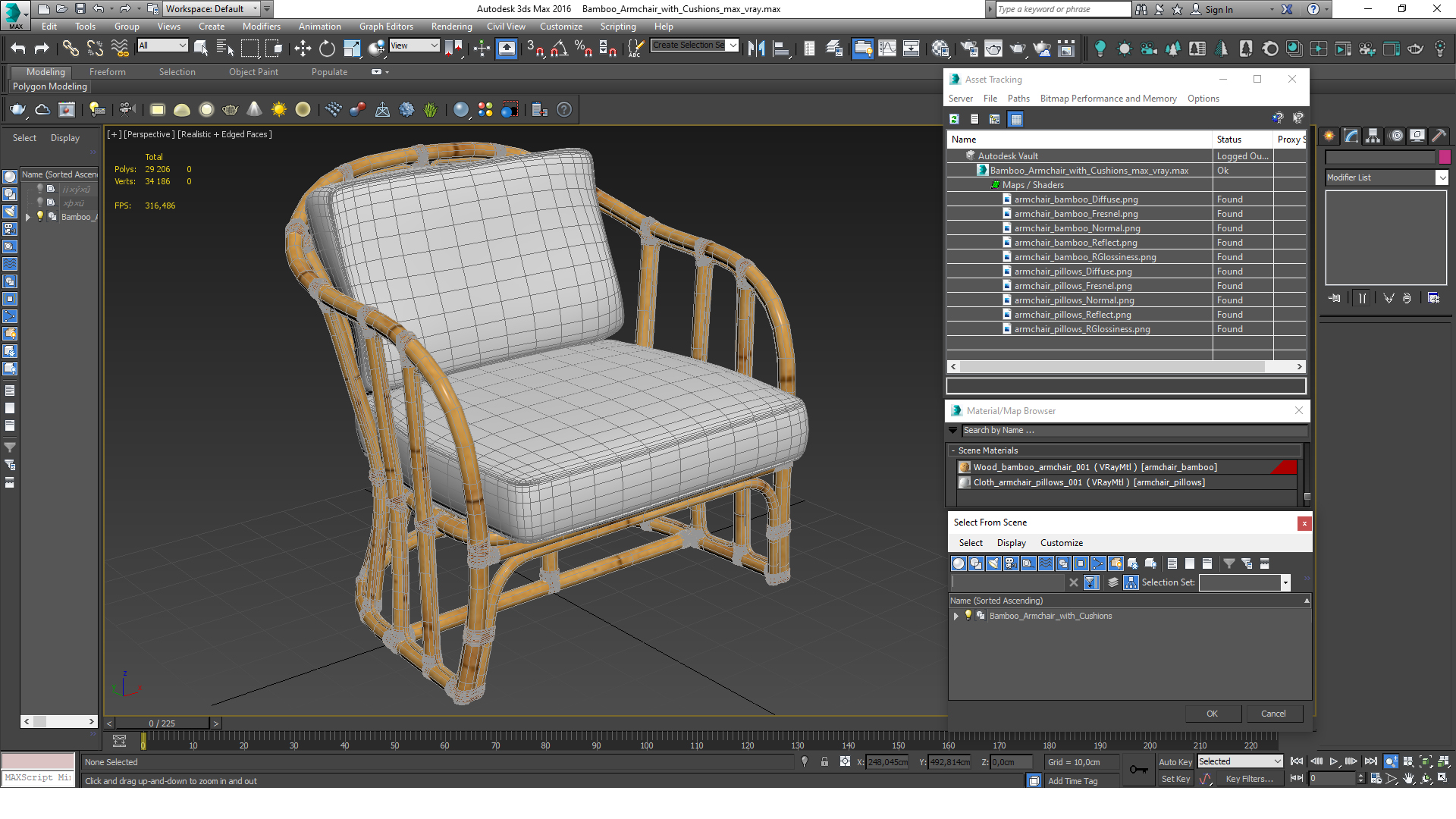 Bamboo Armchair with Cushions is a high quality, photo real 3d model that will enhance detail and realism to any of your rendering projects. The model has a fully textured, detailed design that allows for close-up renders, and was originally modeled in 3ds Max 2020 and rendered with V-Ray. Renders have no postprocessing!
