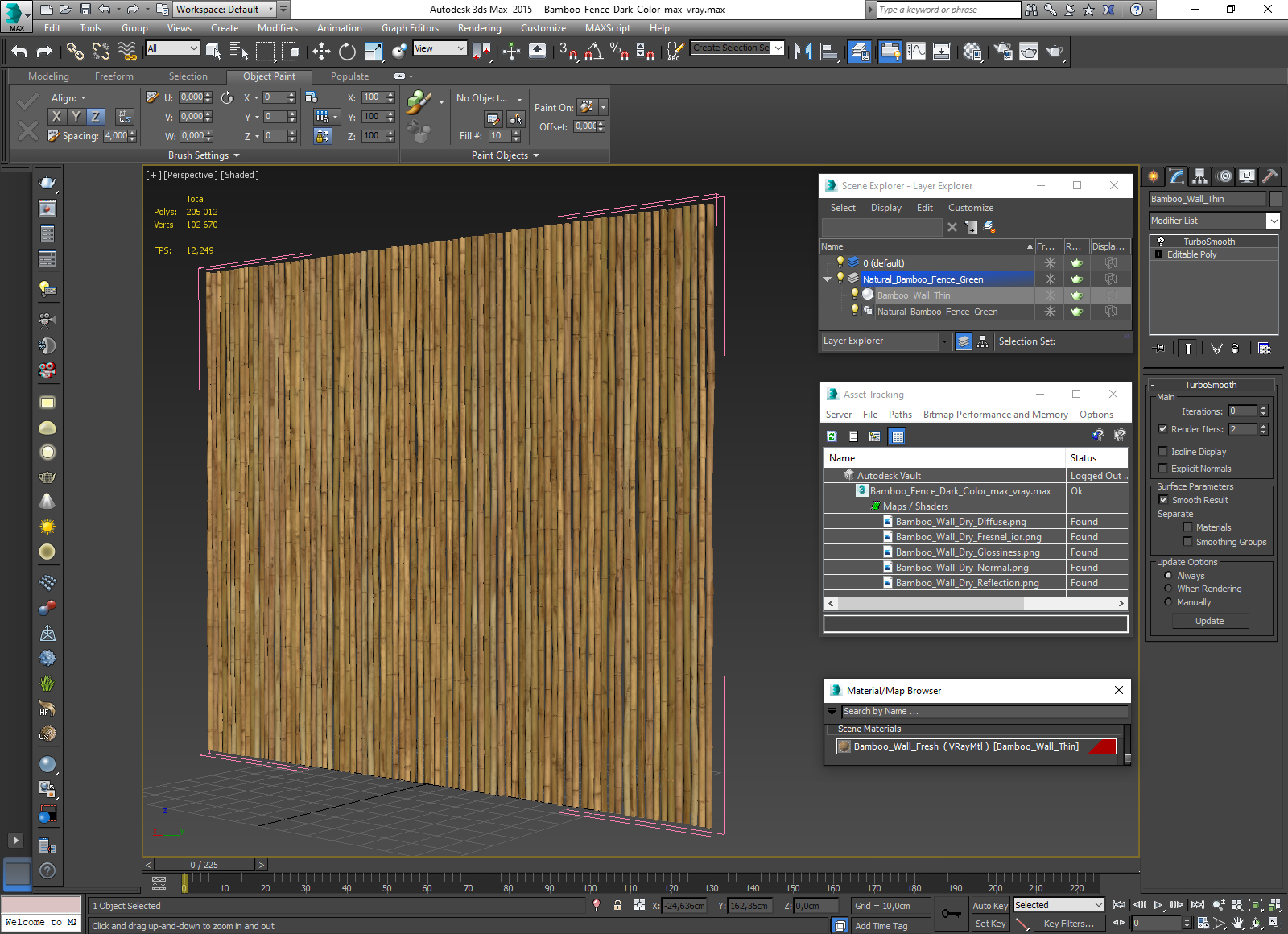 Bamboo Fence Dark Color is a high quality, photo real 3d model that will enhance detail and realism to any of your rendering projects. The model has a fully textured, detailed design that allows for close-up renders, and was originally modeled in 3ds Max 2020 and rendered with V-Ray. Renders have no postprocessing!