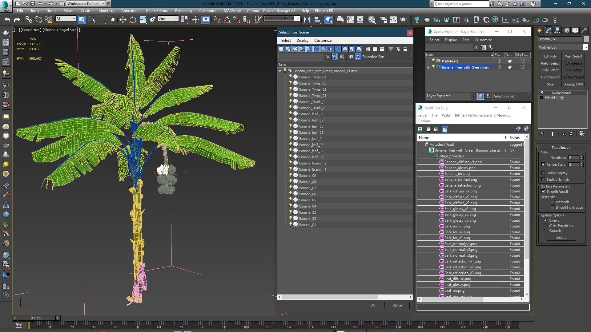 Banana Tree with Green Banana Cluster is a high quality, photo real 3d model that will enhance detail and realism to any of your rendering projects. The model has a fully textured, detailed design that allows for close-up renders, and was originally modeled in 3ds Max 2020 and rendered with V-Ray. Renders have no postprocessing!
