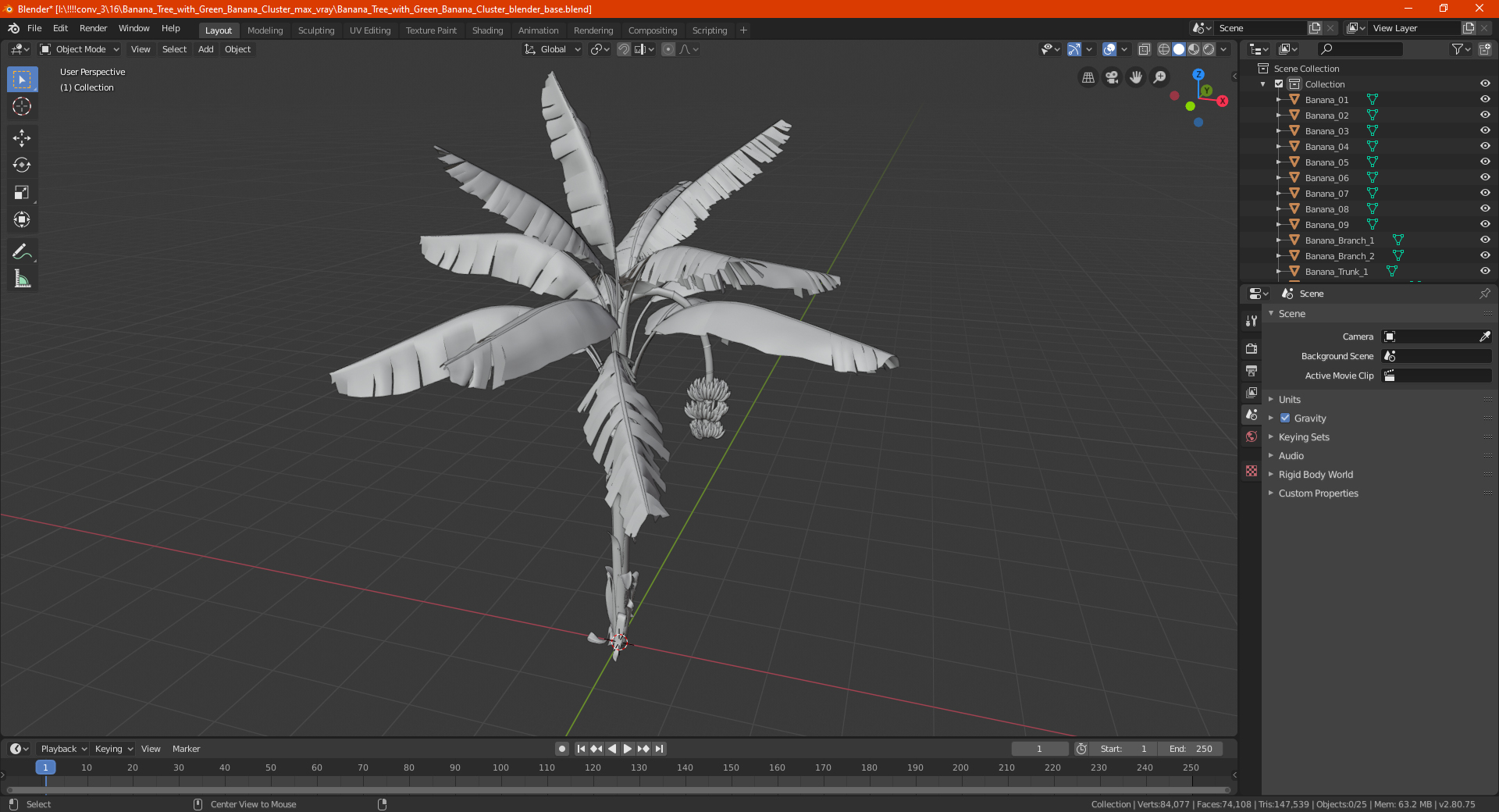Banana Tree with Ripe Yellow Banana Cluster is a high quality, photo real 3d model that will enhance detail and realism to any of your rendering projects. The model has a fully textured, detailed design that allows for close-up renders, and was originally modeled in 3ds Max 2020 and rendered with V-Ray. Renders have no postprocessing!