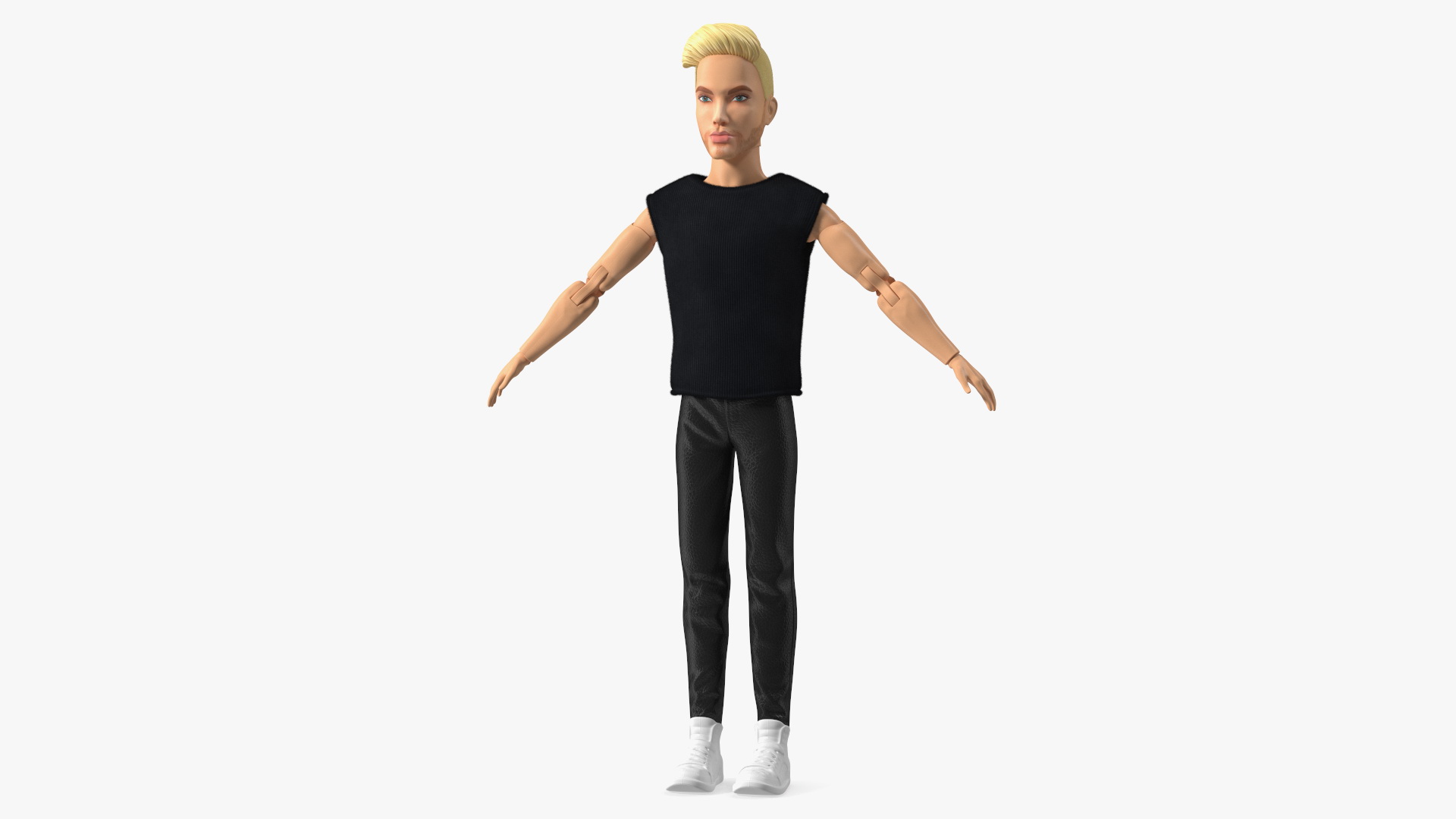 Barbie Ken GTD90 Dressed T-pose Fur is a three-dimensional model of a Ken fashion doll which is blonde male person doll with a facial hair and poseable articulated body.