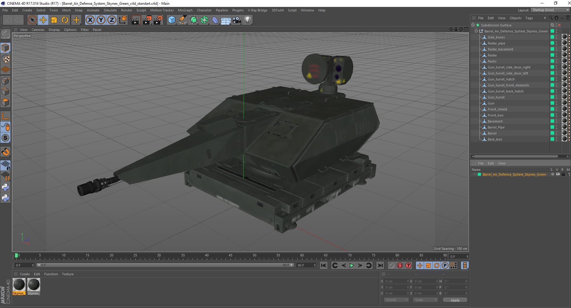 Barrel Air Defense System Skynex Green is a high quality, photo real 3d model that will enhance detail and realism to any of your rendering projects. The model has a fully textured, detailed design that allows for close-up renders, and was originally modeled in 3ds Max 2020 and rendered with V-Ray. Renders have no postprocessing!