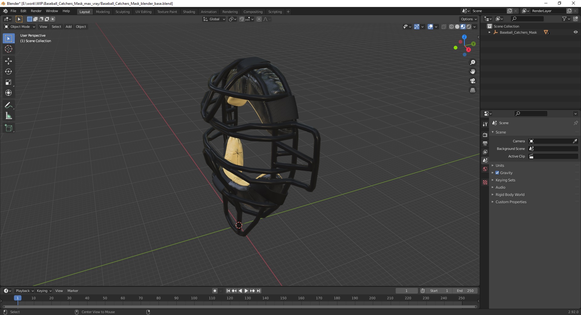 Baseball Catchers Mask is a high quality, photo real 3d model that will enhance detail and realism to any of your rendering projects. The model has a fully textured, detailed design that allows for close-up renders, and was originally modeled in 3ds Max 2020 and rendered with V-Ray. Renders have no postprocessing!