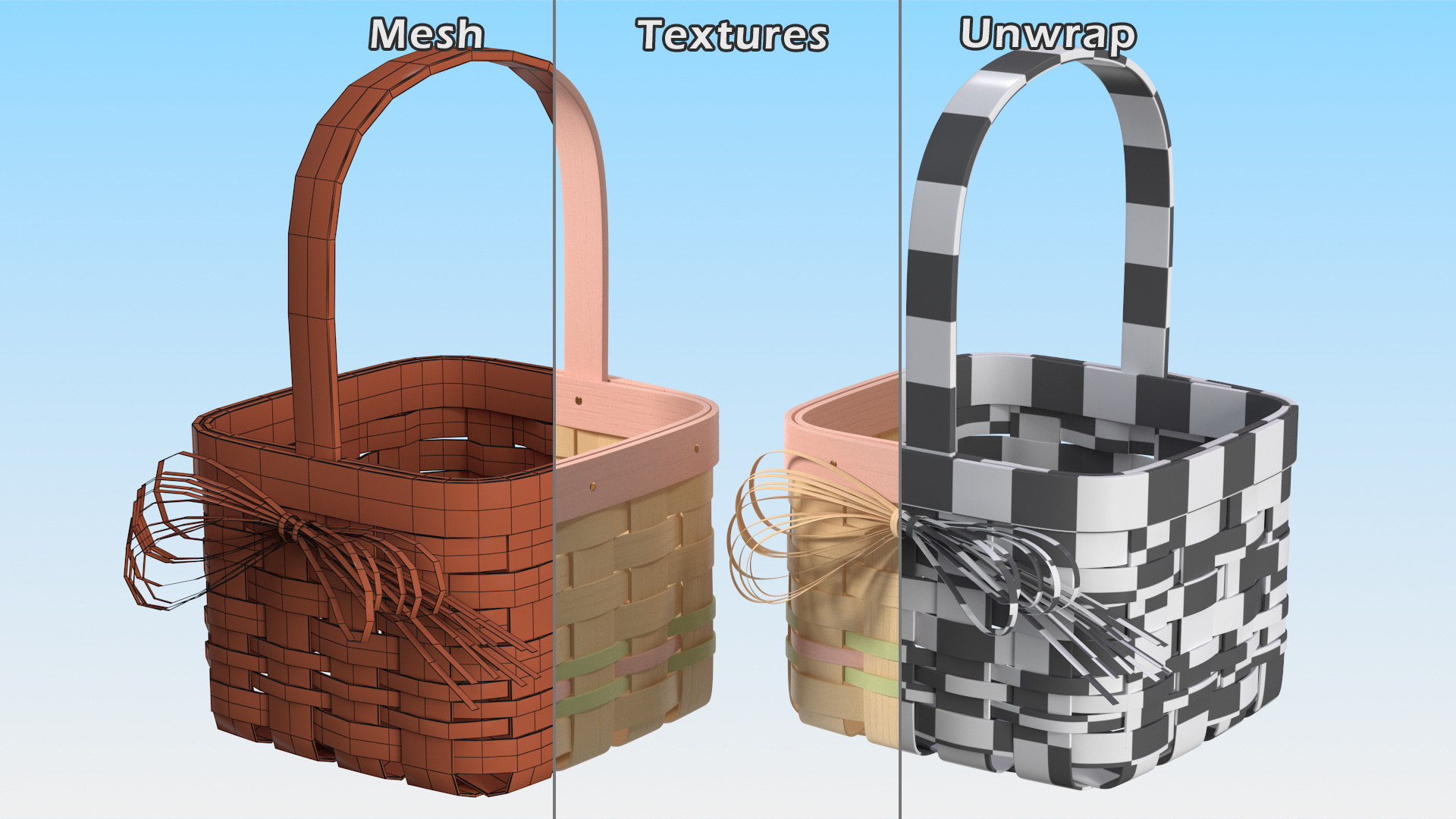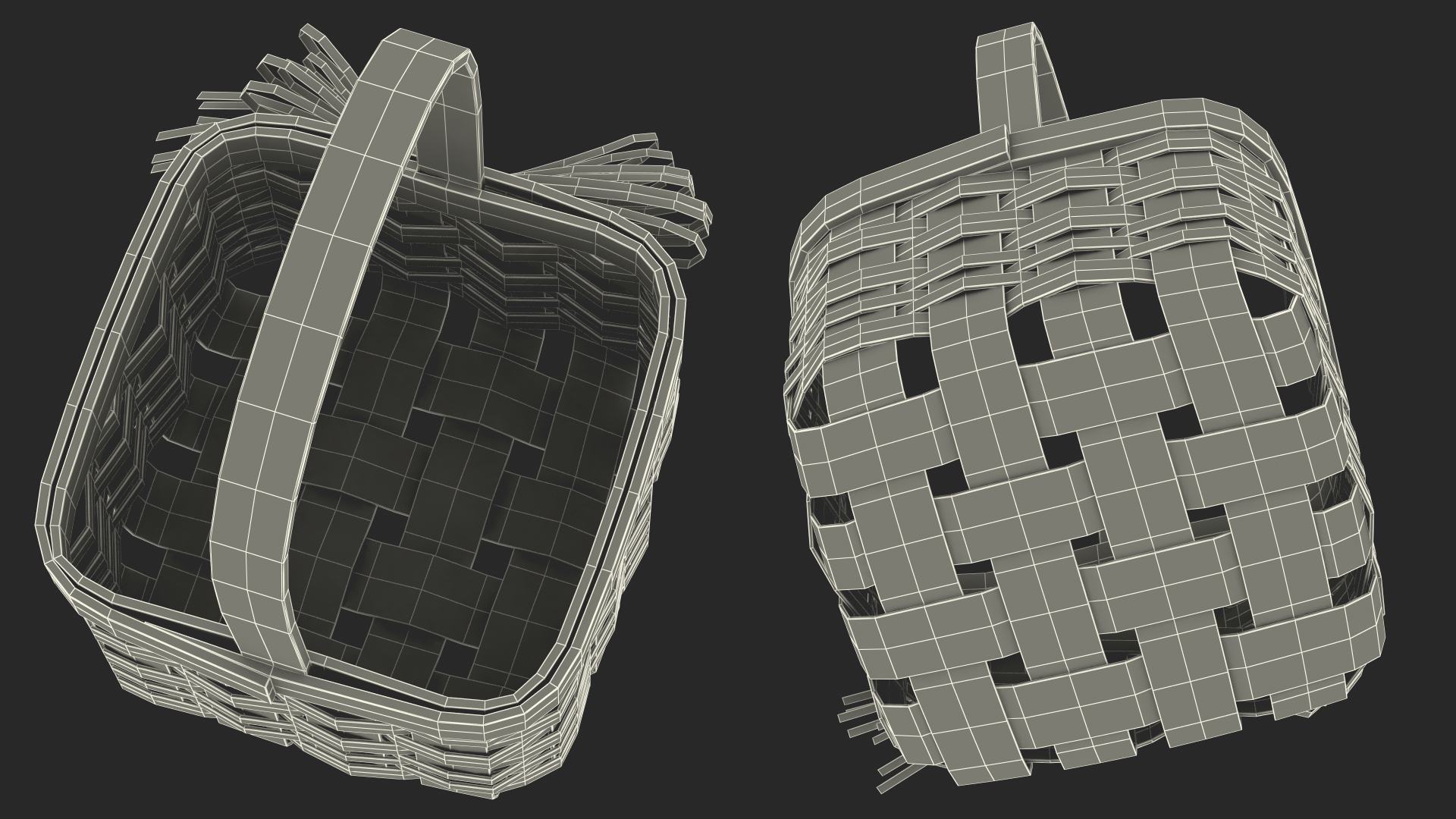 Basket with Handle is a three-dimensional model of a vintage container which made from stiff fibers.
