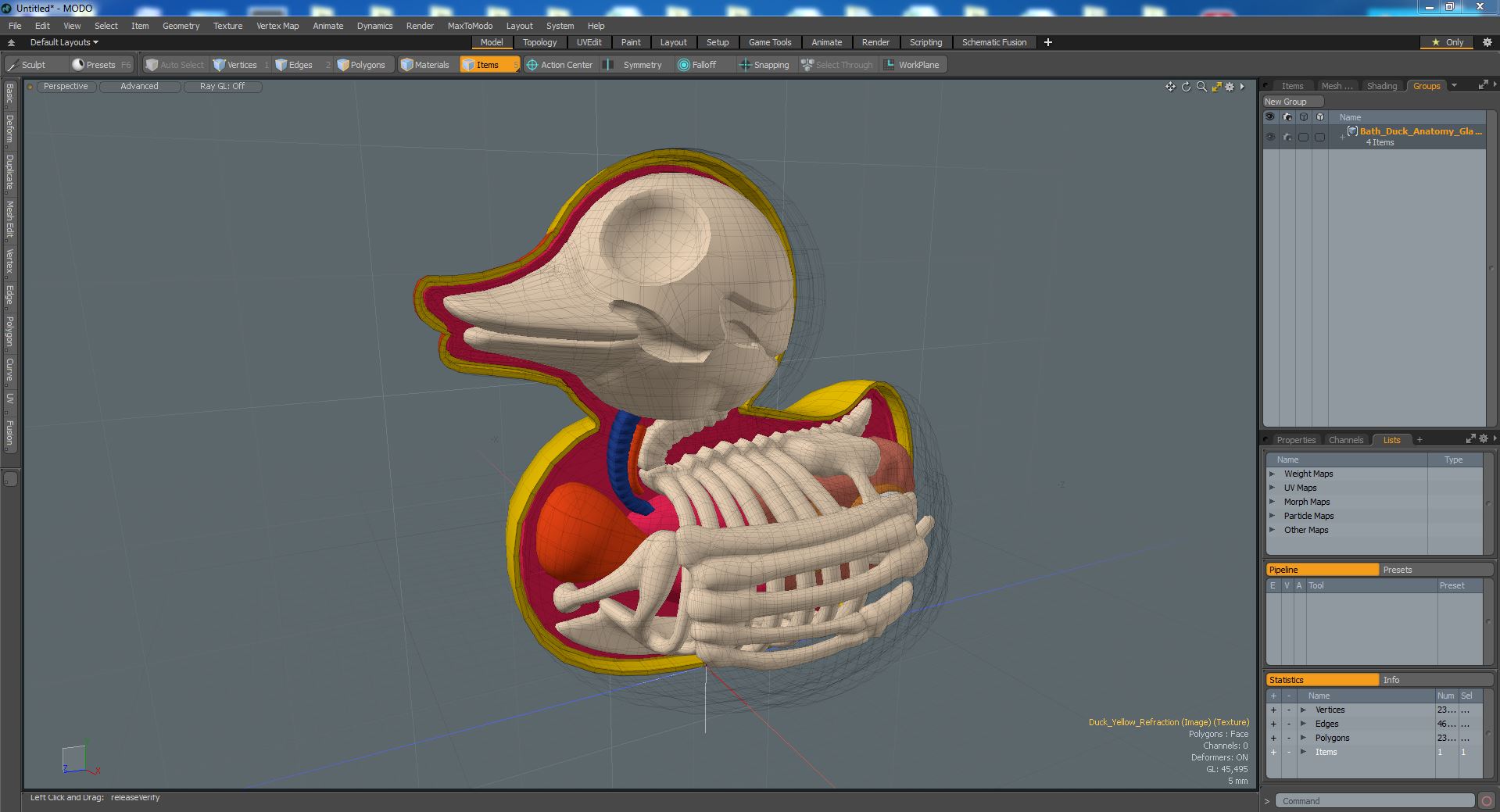 Bath Duck Anatomy Glass Half Shell is a three-dimensional model of a rubber ducky bath time toy which created with dark sense of humor style.