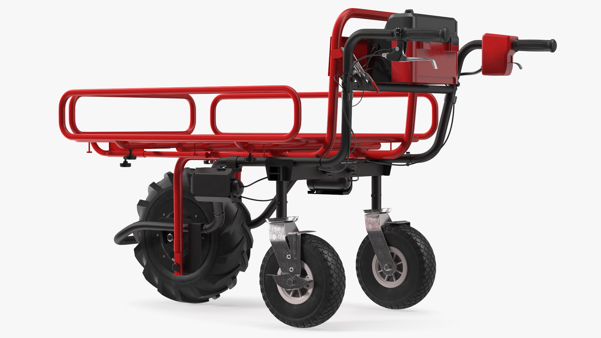 Battery Powered Wheelbarrow with Pipe Frame is a three-dimensional model of a contemporary wheelbarrow electric powered utility cart.