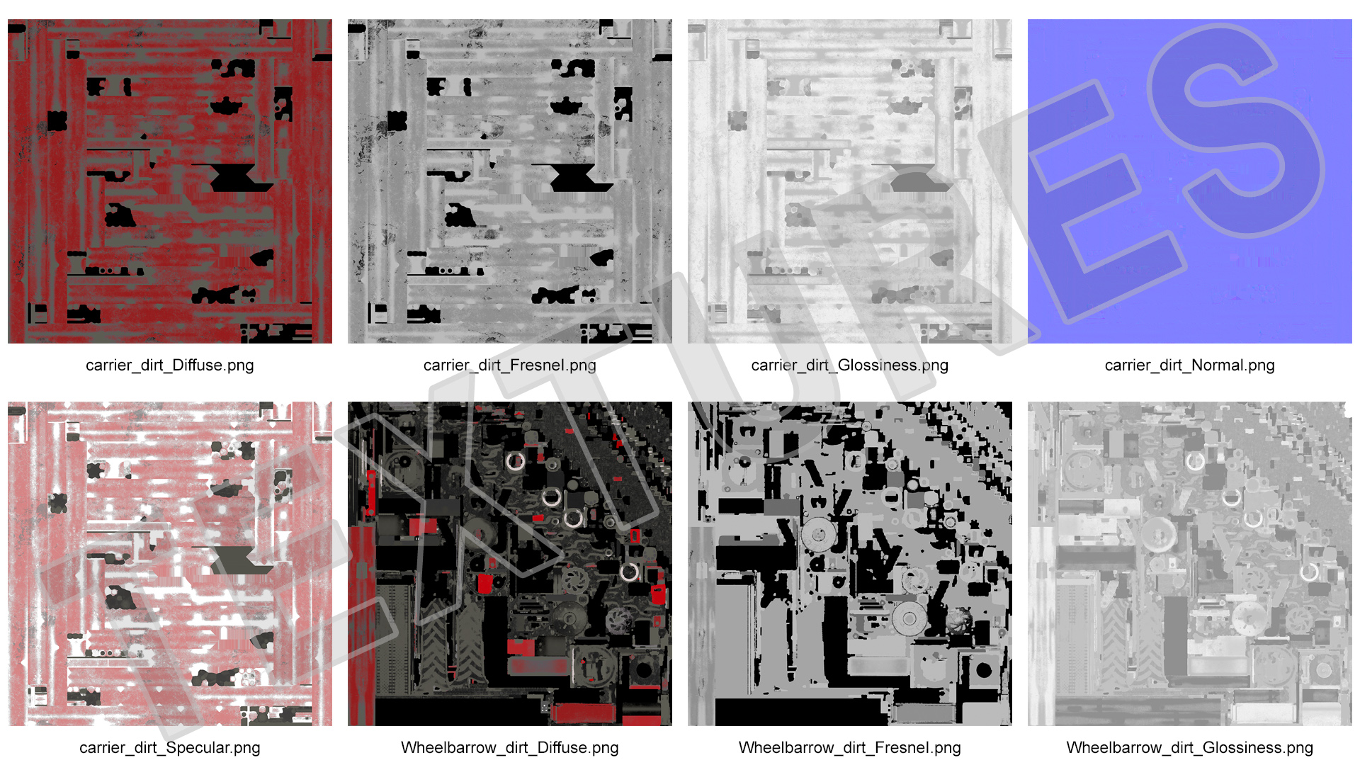 All textures and materials are included and mapped. (All colors can be easily modified.)