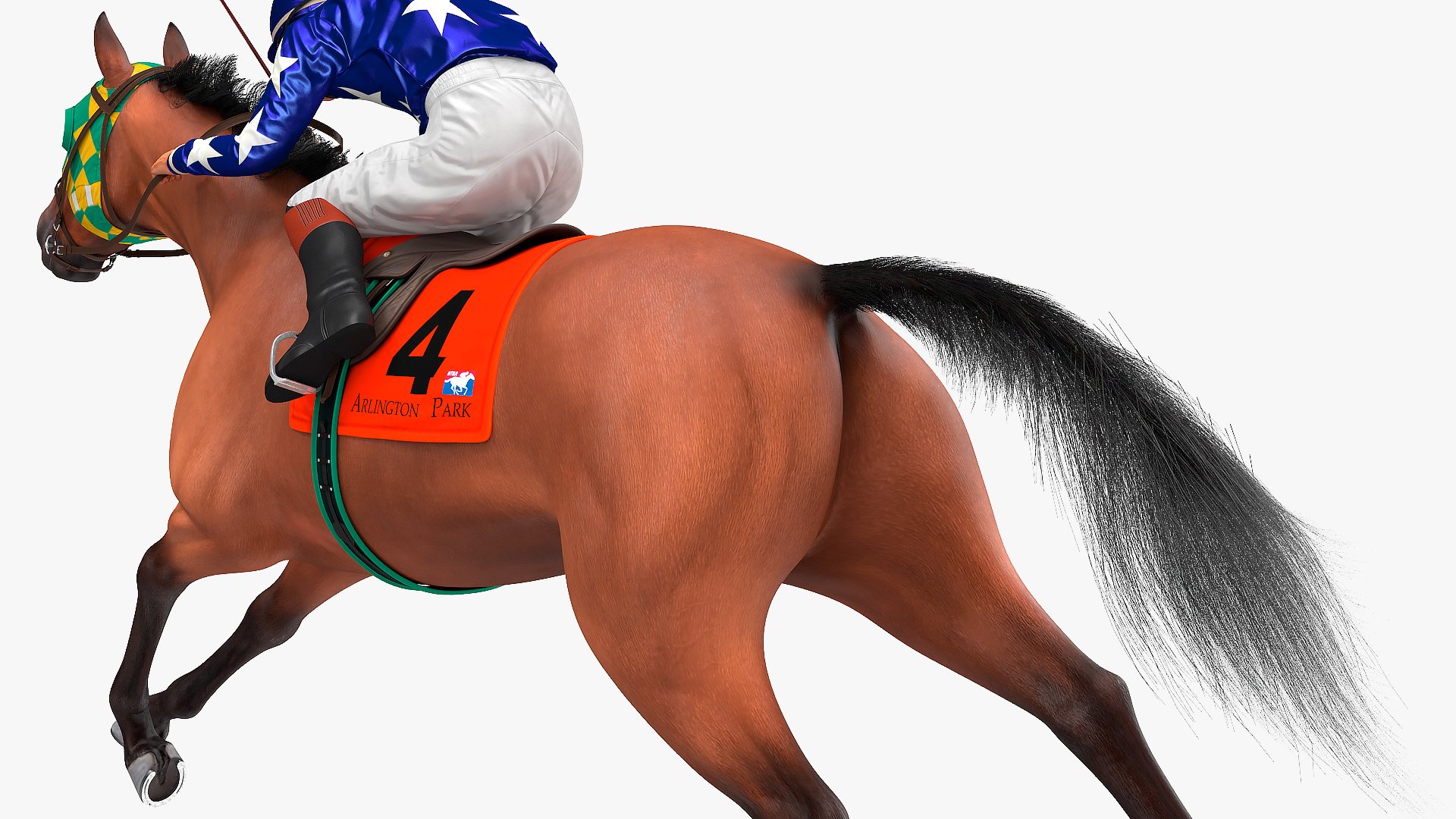 Bay Racing Horse with Jokey Running Fur is a high quality, photo real 3d model that will enhance detail and realism to any of your rendering projects. The model has a fully textured, detailed design that allows for close-up renders, and was originally modeled in 3ds Max 2020 and rendered with V-Ray. Renders have no postprocessing!
