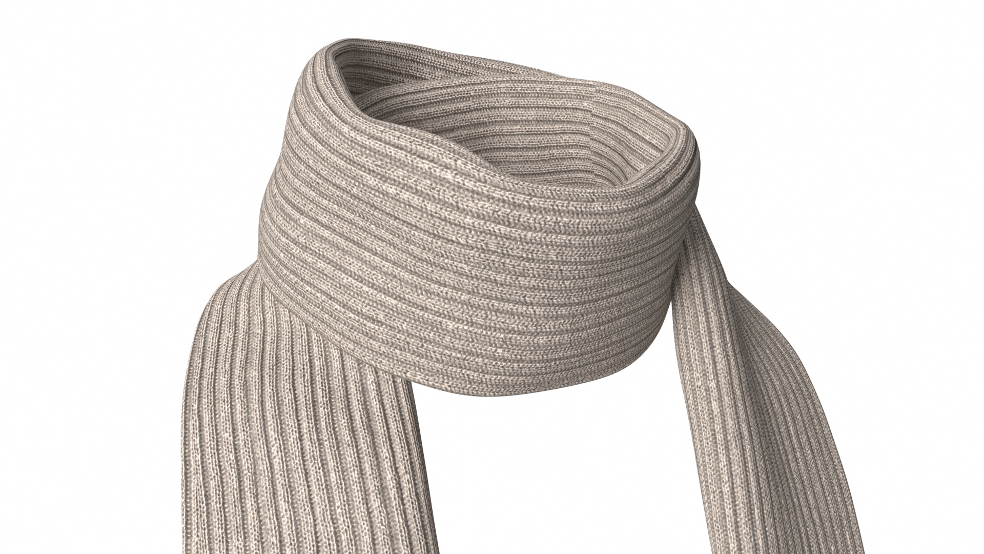 Beige Scarf Once Around Style is a three-dimensional model of scarf which is a long piece of fabric which can be worn on or around the neck, shoulders, or head, and which is used for sun protection, warmth, cleanliness, fashion, and more.