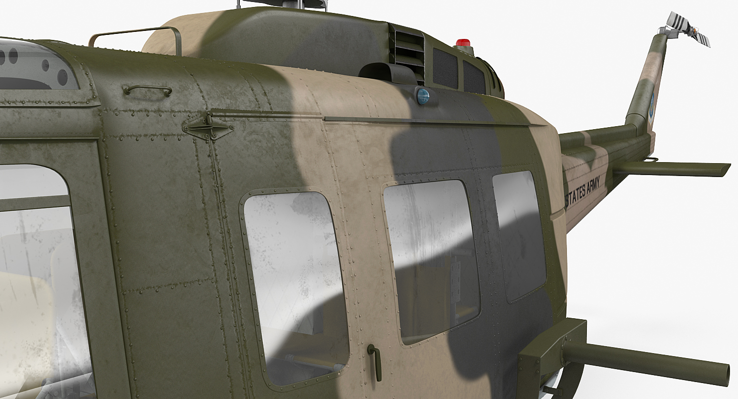 Bell UH 1 Iroquois Camo is a high quality, photo real 3d model that will enhance detail and realism to any of your rendering projects. The model has a fully textured, detailed design that allows for close-up renders, and was originally modeled in 3ds Max 2020 and rendered with V-Ray. Renders have no postprocessing!