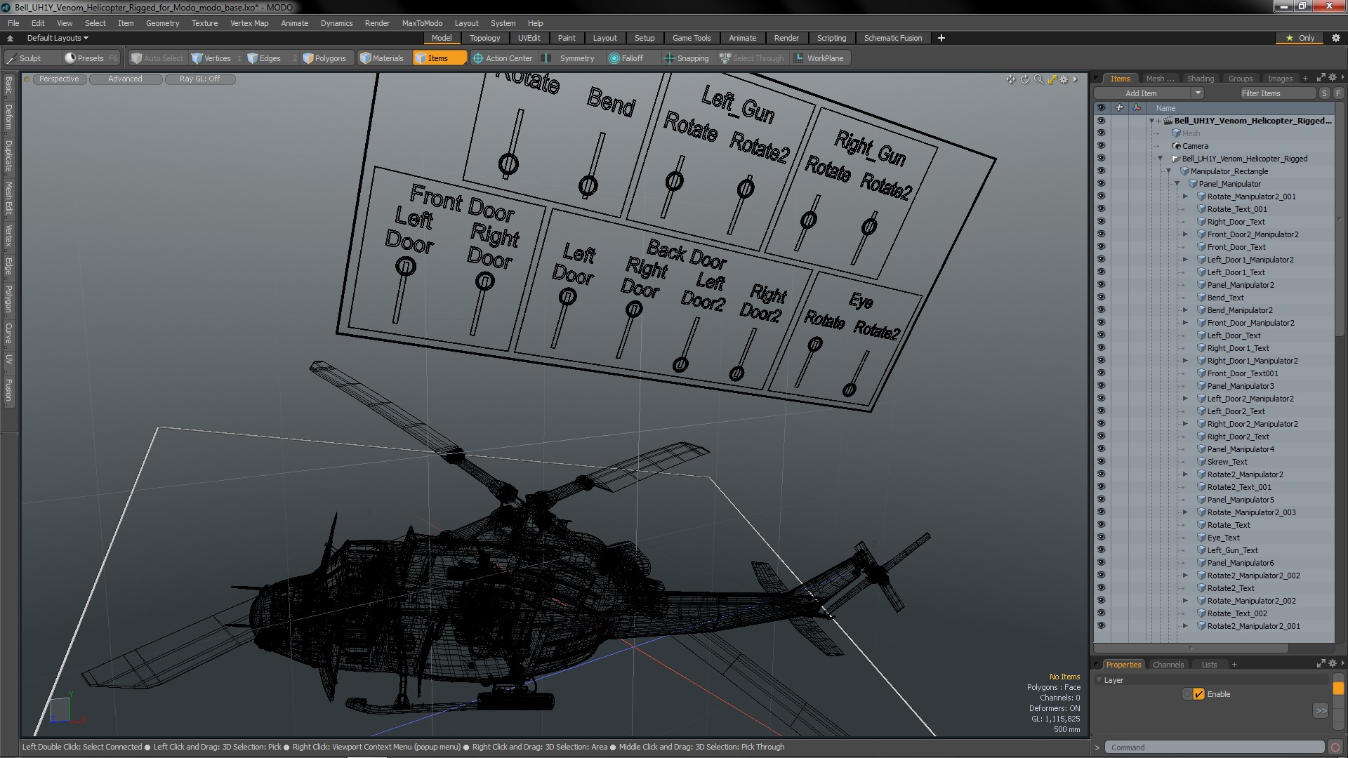 Bell UH1Y Venom Helicopter Rigged for Modo is fully rigged and is ready to be animated. You can easily position it the way you need or animate it the way your project requires using helpers in 3D Studio Max. See the turntable to get an idea of how rigging works.