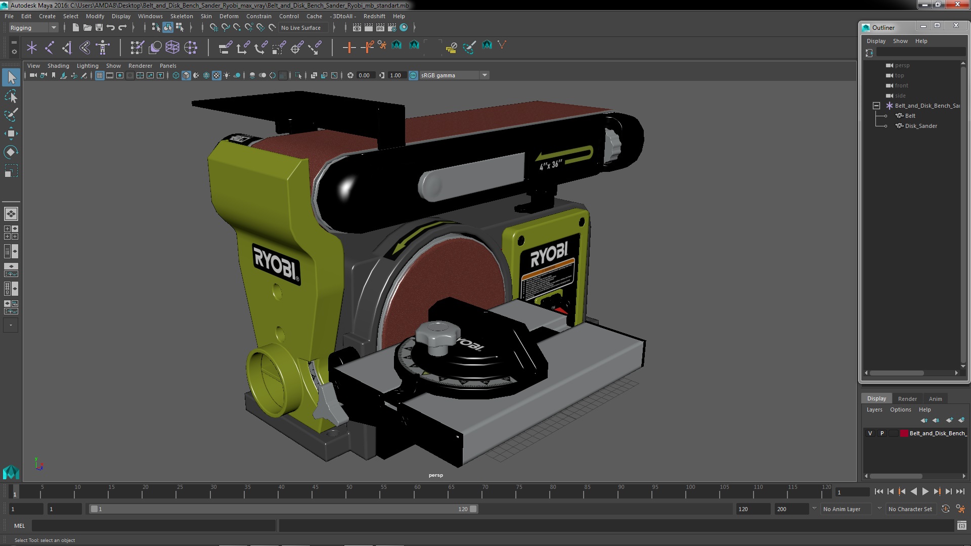Belt and Disk Bench Sander Ryobi is a three-dimensional model of belt and disk combo sander which is a versatile electric power tool which used in woodworking and metalworking.