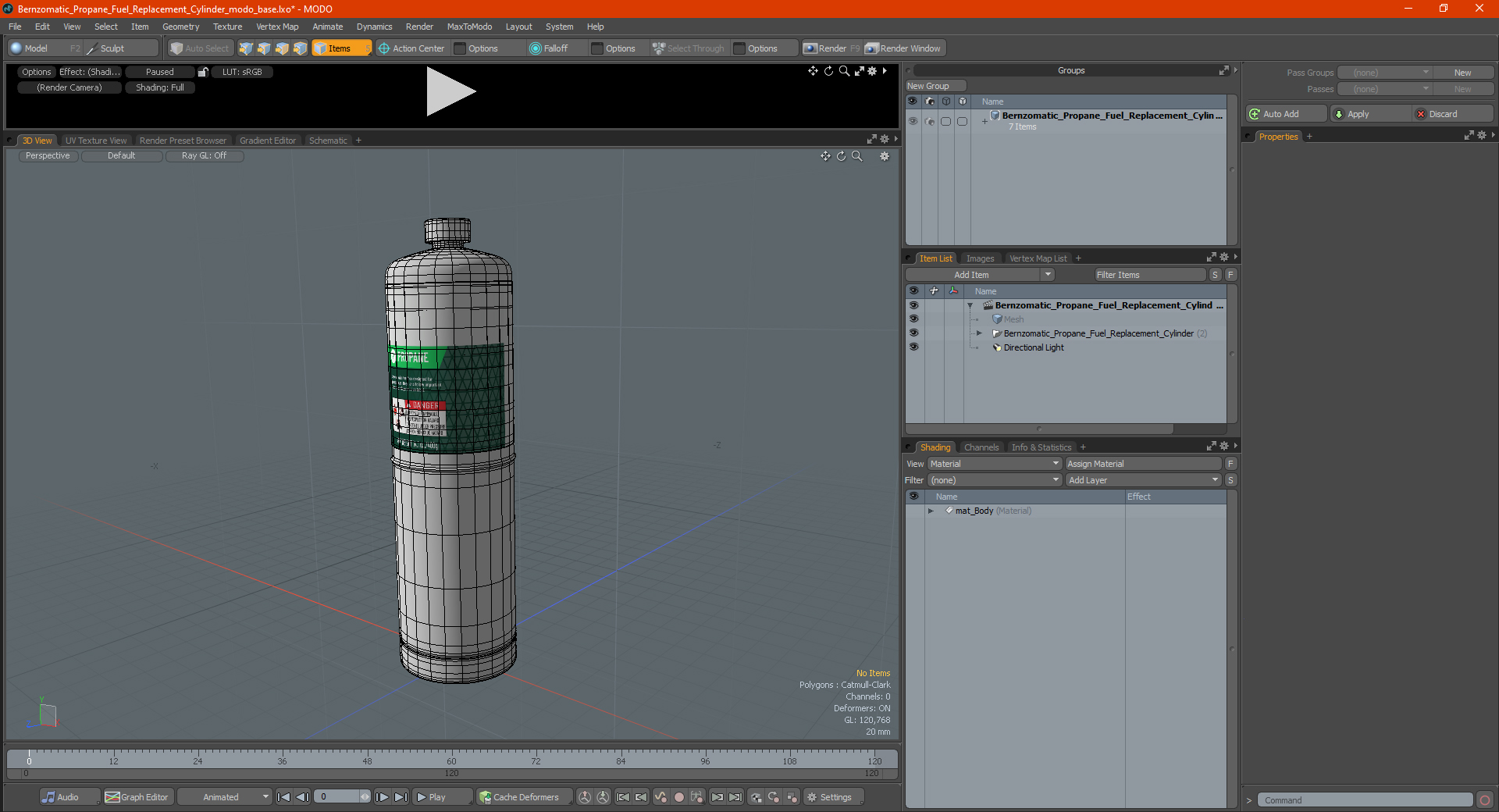 Bernzomatic Propane Fuel Replacement Cylinder is a high quality, photo real 3d model that will enhance detail and realism to any of your rendering projects. The model has a fully textured, detailed design that allows for close-up renders, and was originally modeled in 3ds Max 2020 and rendered with V-Ray. Renders have no postprocessing!