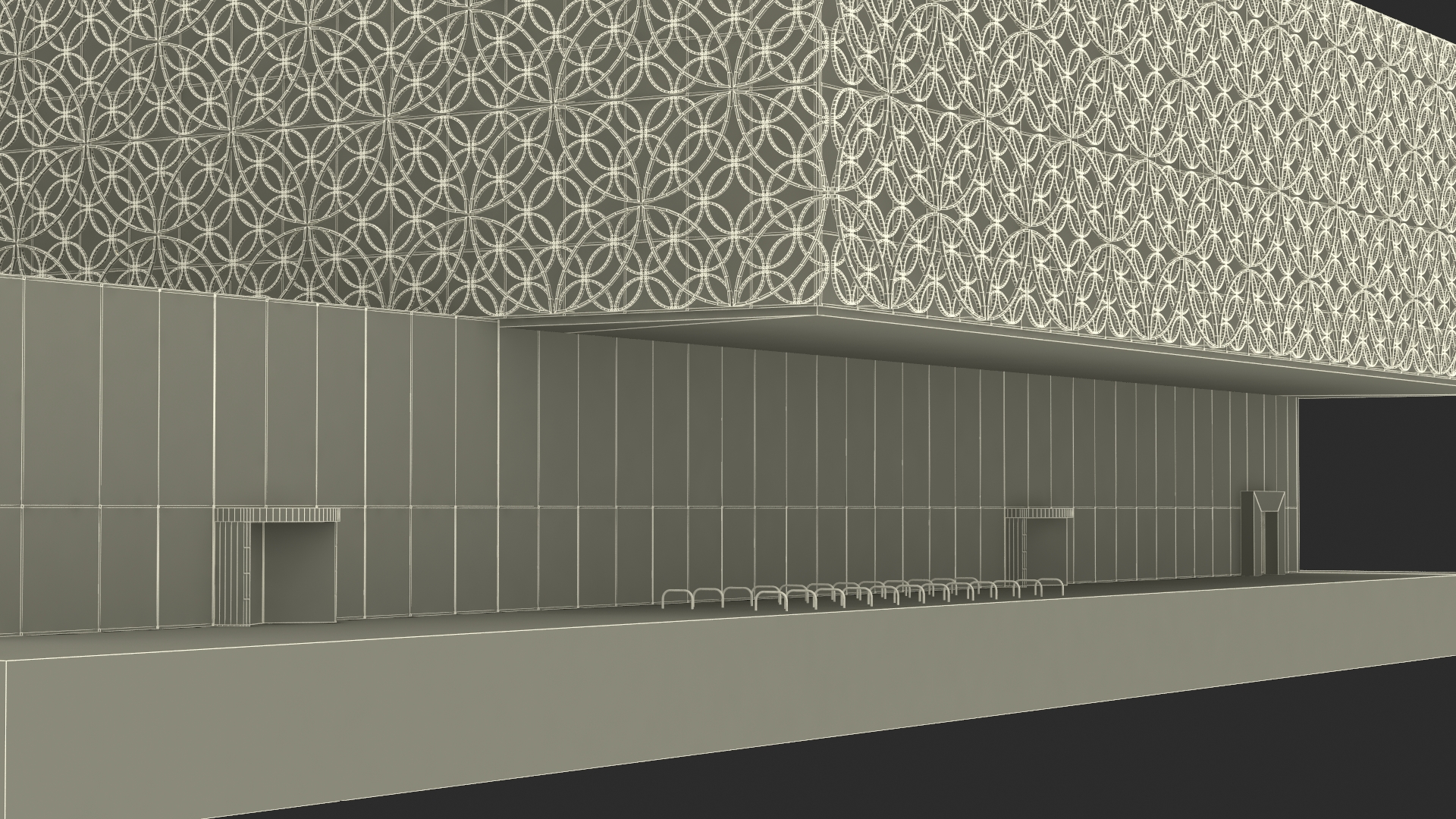 This model captures the library's intricate facade, featuring a striking combination of contemporary and traditional design elements, including the iconic gold filigree and expansive glass windows. Constructed with attention to detail, it showcases the building's multi-layered structure, outdoor spaces, and surrounding landscape. The design serves as an excellent representation of modern civic architecture and community spaces, making it an ideal resource for educational and presentation purposes.